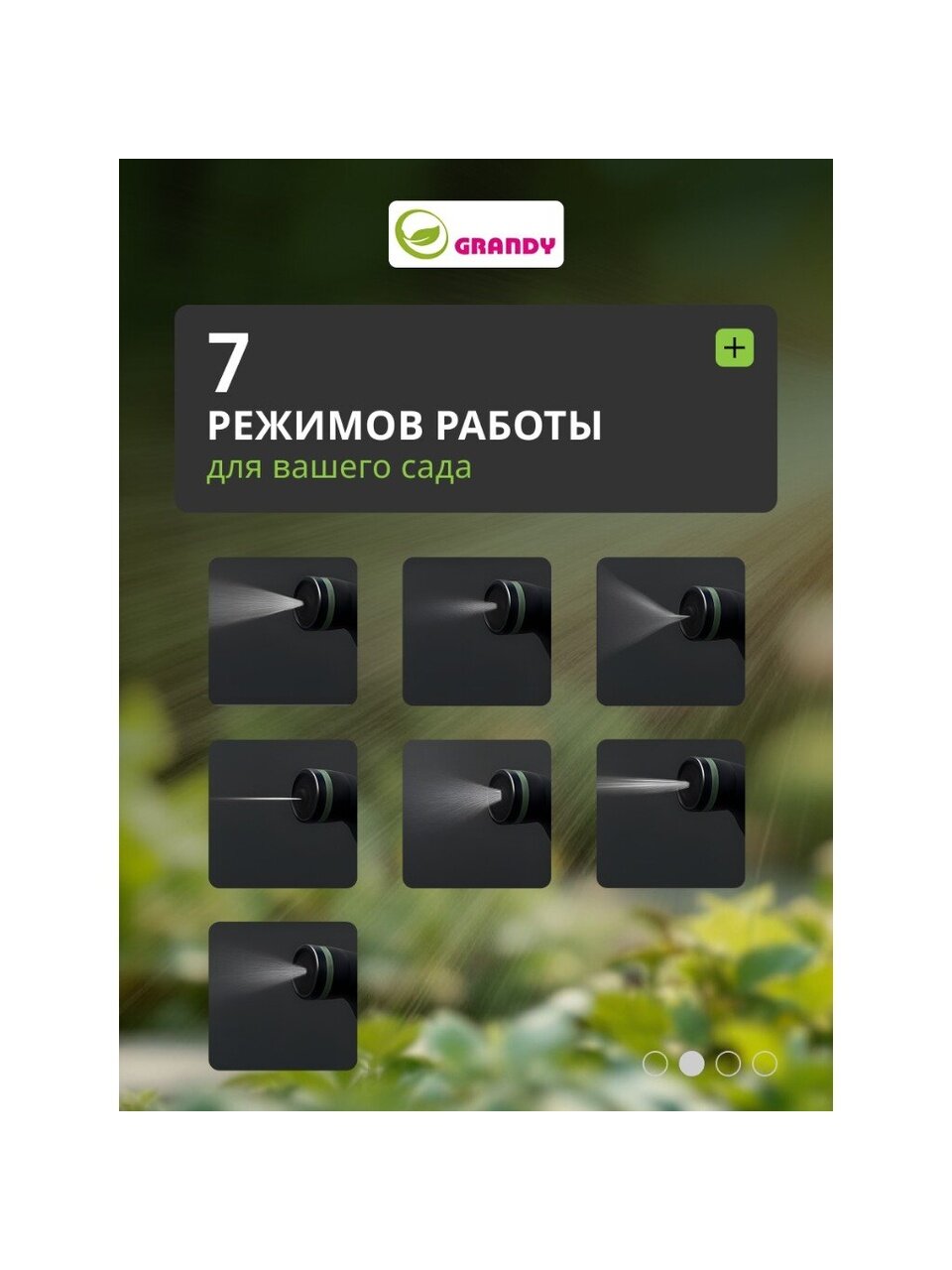 Пистолет для полива 7 режимов Grandy js-9137 — эффективное решение для ухода за газоном и огородом. Быстросъемное соединение обеспечивает легкую установку, а регулировка режимов позволяет подобрать оптимальный напор воды. Прочный ABS-пластик гарантирует долговечность. Универсальность и удобство делают этот инструмент отличным выбором для полива участка.