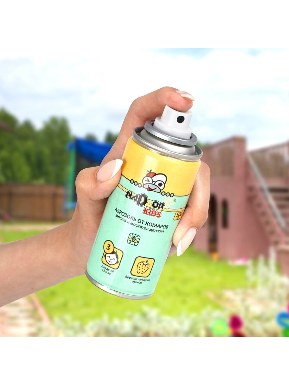 Репеллент от комаров Nadzor для детей — эффективная защита от комаров, мошек, мокрецов и москитов на водной основе. Специальная формула с пропиленгликолем и деионизированной водой безопасна для кожи и разрешена к применению детям от 3 лет. Удобный аэрозоль подходит для использования дома и на улице, обеспечивая спокойствие и комфорт. Объем 100 мл — оптимальный выбор для семьи.