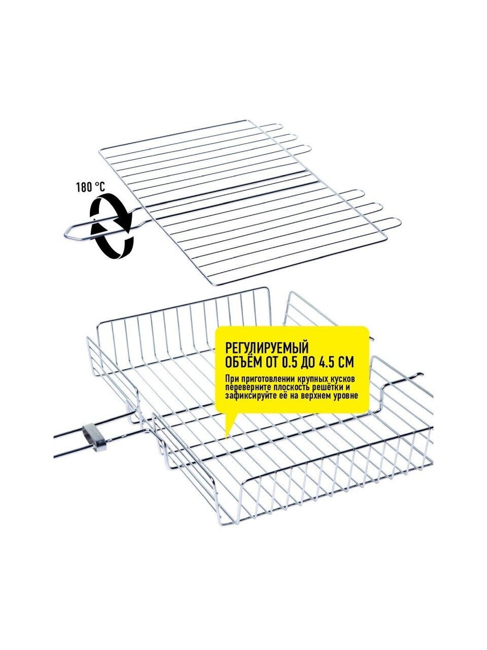 - За счет регулируемой высоты на решетке удобно готовить как мелко нарезанные, так и крупные куски продуктов.