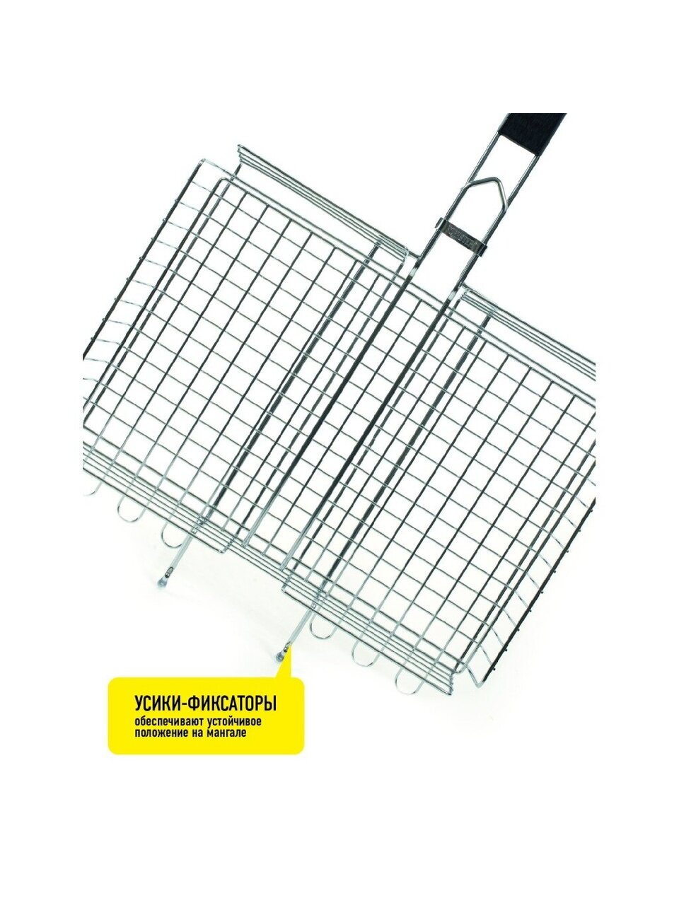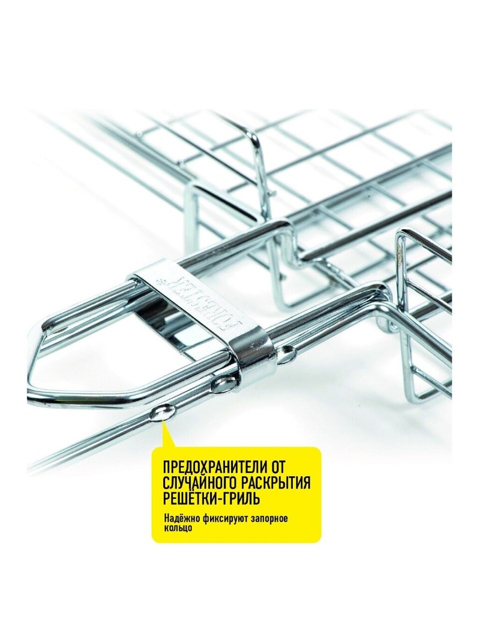 - Решетка-гриль устойчиво размещается на мангале благодаря рамке-фиксатору.