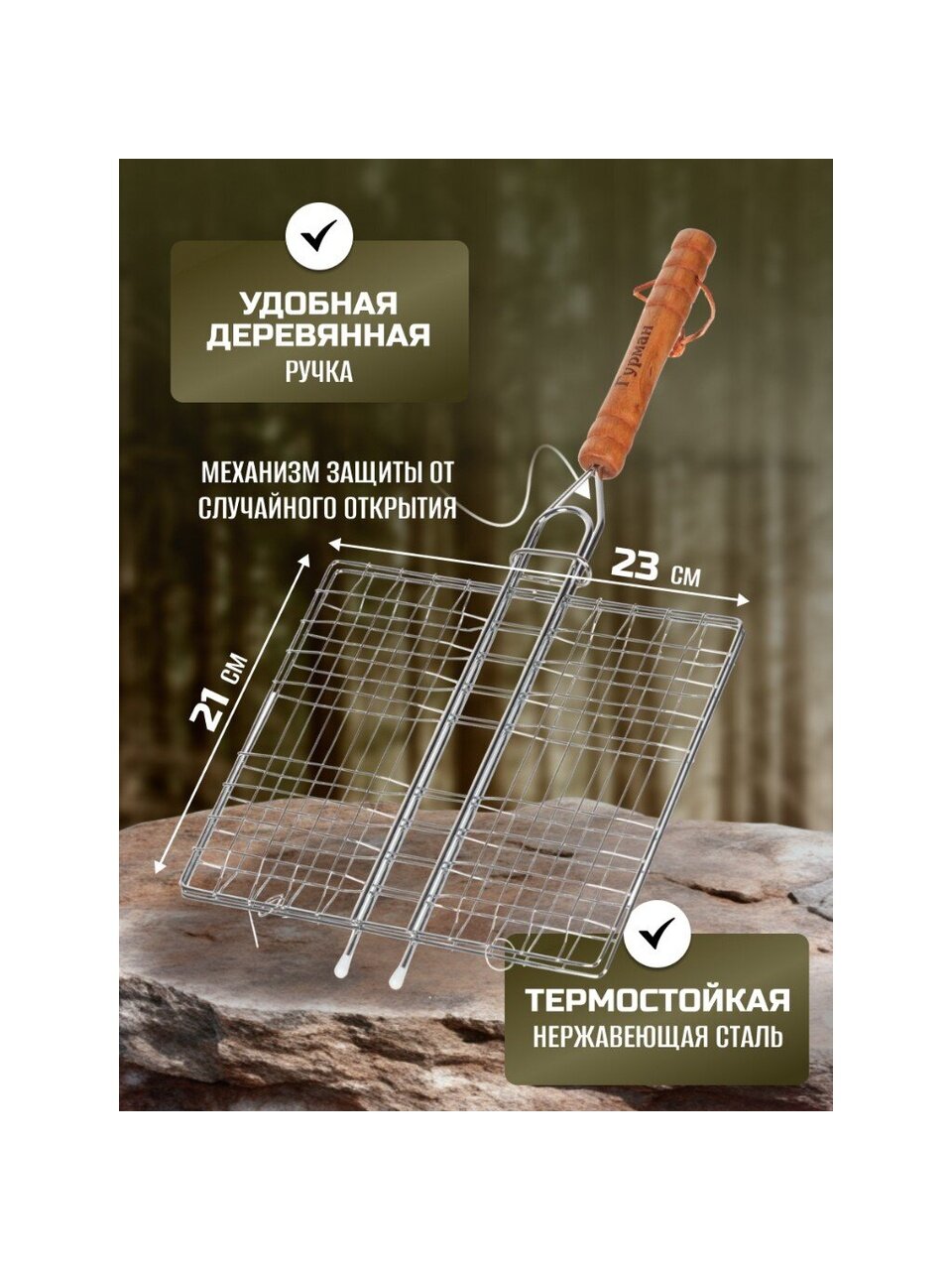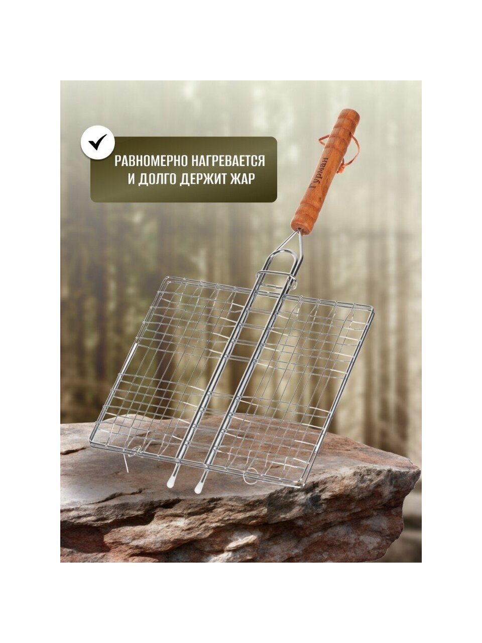 Решетка для барбекю Гурман повысит уровень Вашего комфорта на природе. Динная ручка обеспечит безопасное взаимодействие с продуктами на огне и не позволит обжечься. Компактный размер позволит Вам удобно разместить аксессуар в шкафу для кухонной утвари или в багажнике автомобиля.