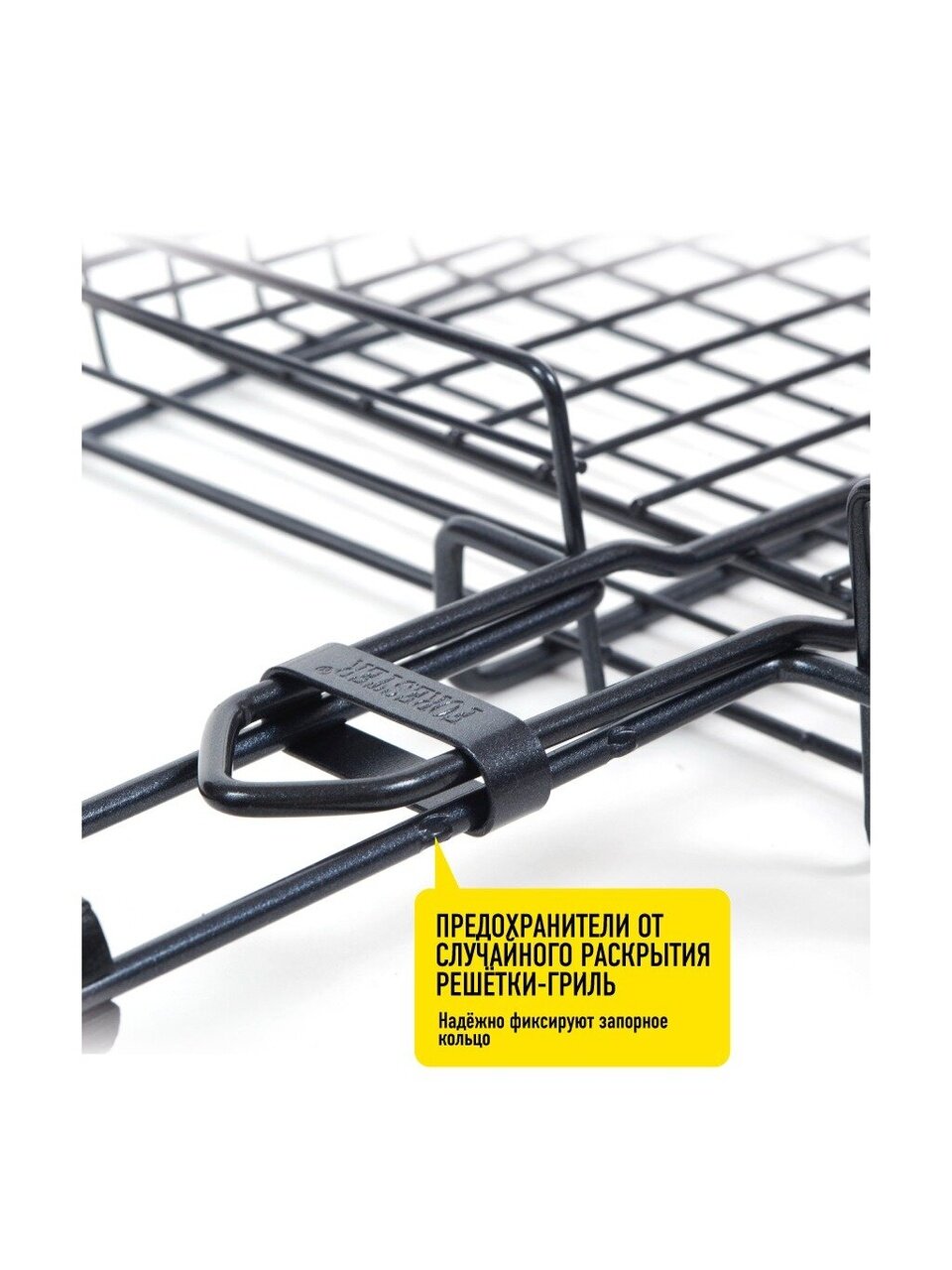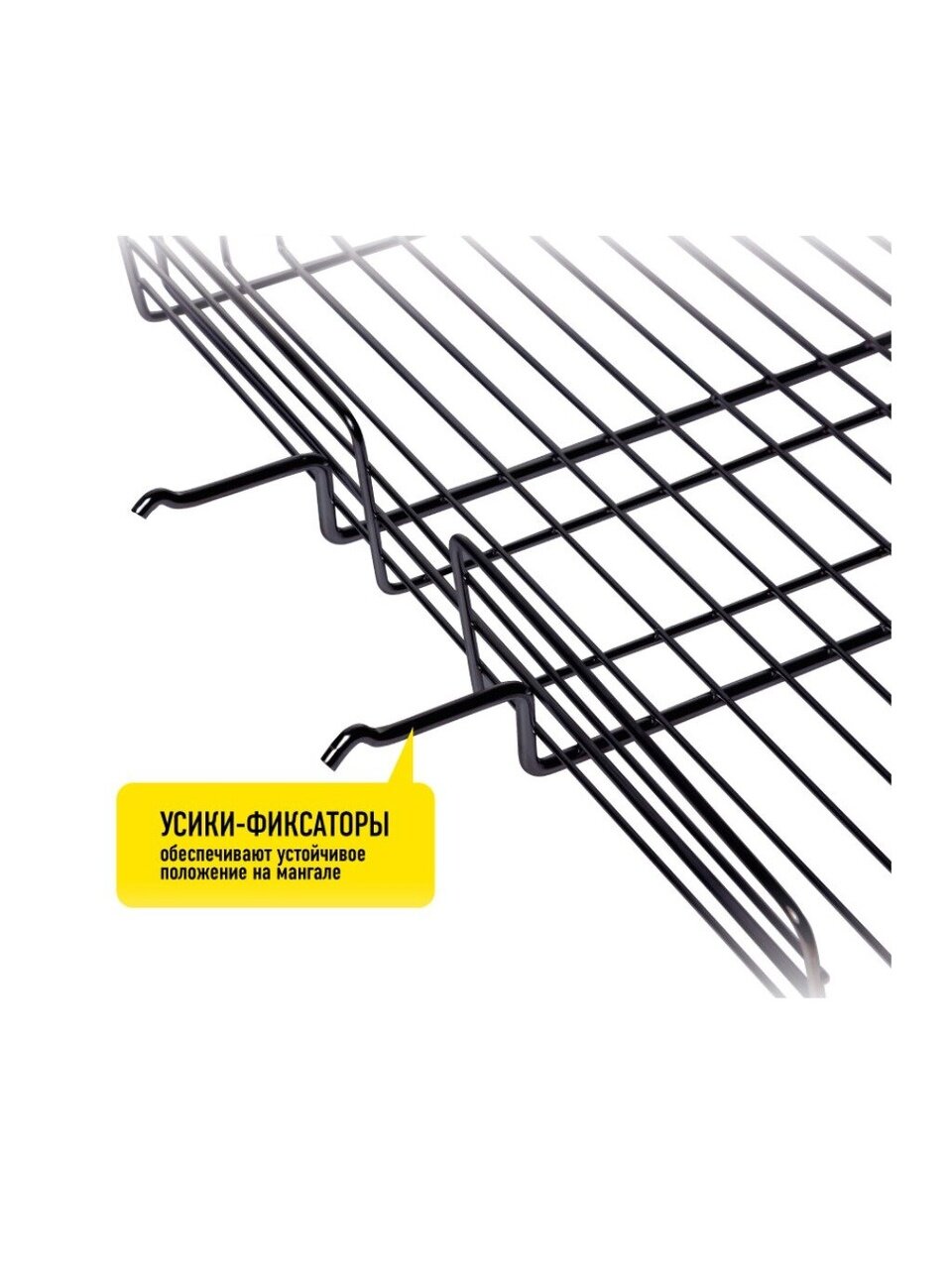 - Решетка-гриль устойчиво размещается на мангале благодаря рамке-фиксатору.