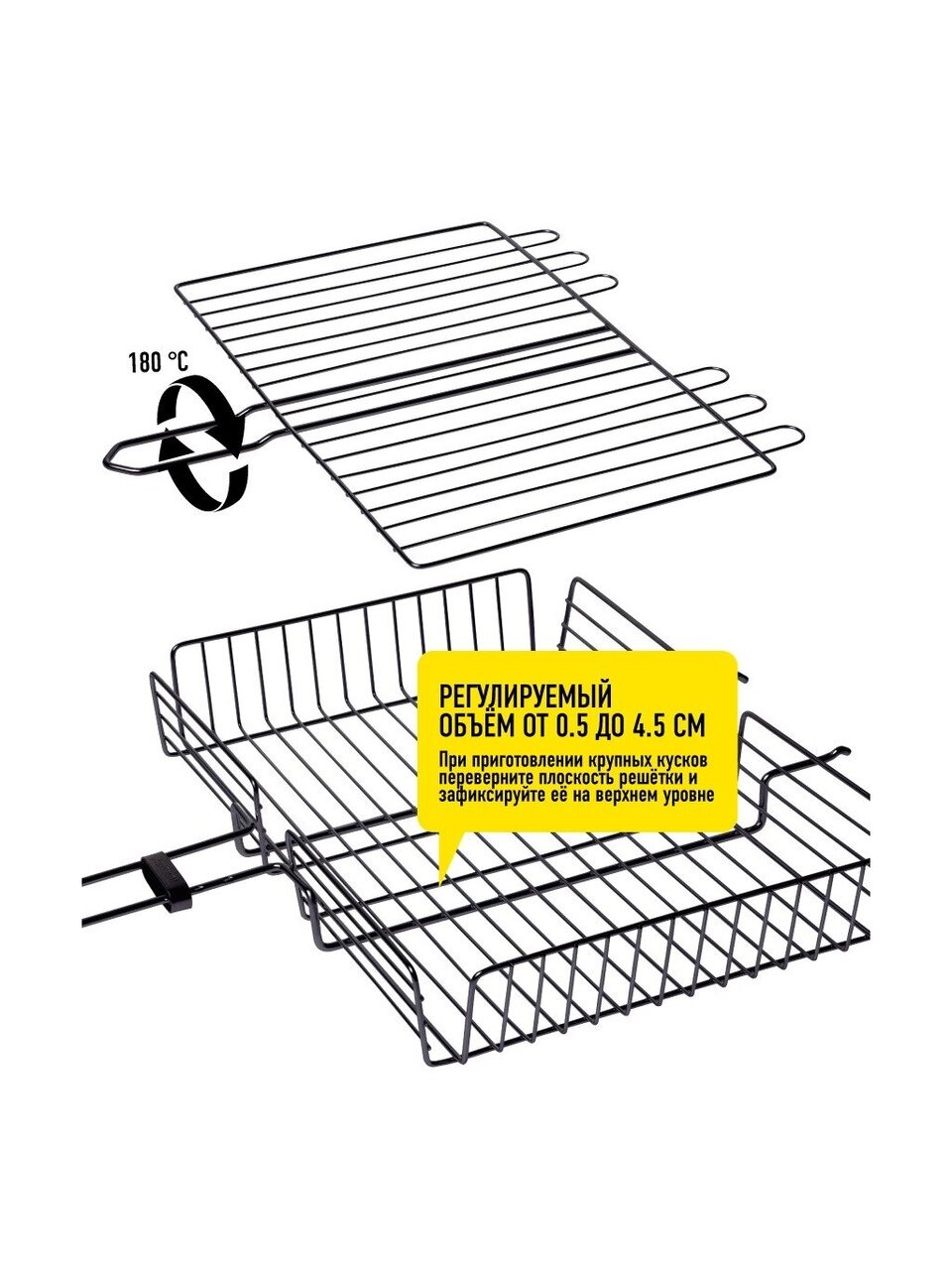 - За счет регулируемой высоты на решетке удобно готовить как мелко нарезанные, так и крупные куски продуктов.