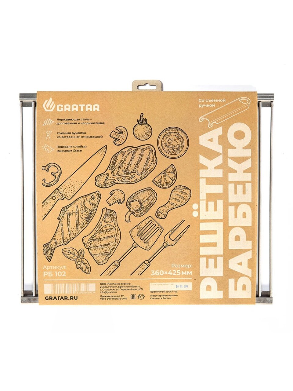 Вы можете приобрести «Решетка барбекю 360х425 мм, Gratar, нержавеющая сталь, рукоятка сталь, РБ 102» и другие товары в нашем интернет-магазине в Ставрополе по низким ценам и с бесплатным самовывозом.