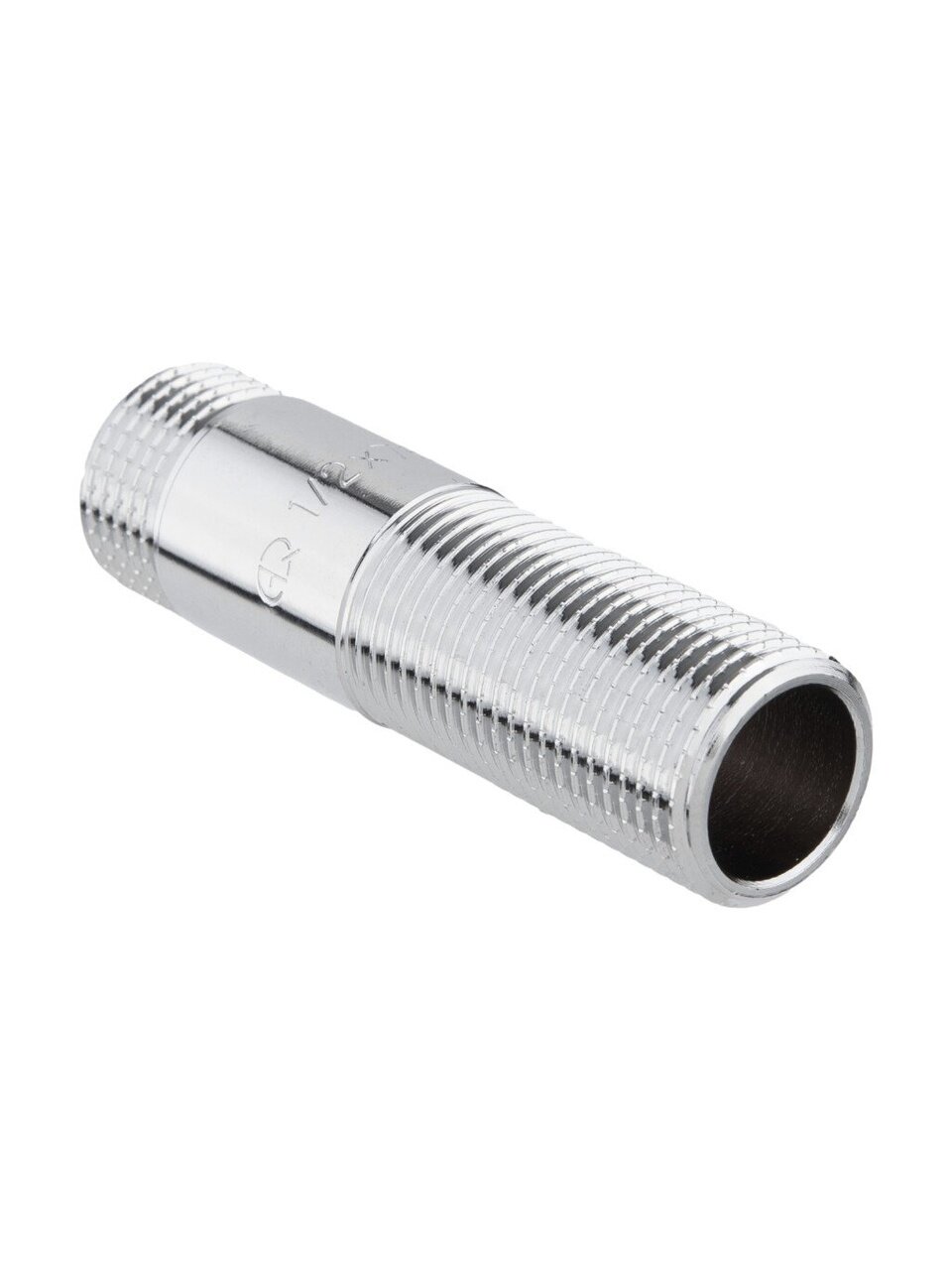 Диаметр подключения — 1/2 дюйма (около 15 мм), длина изделия — 50 мм. Оба конца имеют наружную резьбу (ш-ш), что удобно для прямого соединения фитингов.