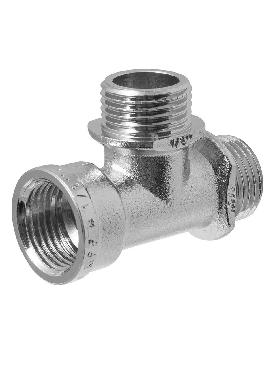 Диаметр подключения — 1/2 дюйма, стандартный размер для большинства бытовых водопроводных систем. Тройник оснащён внутренней и наружной резьбой для универсального монтажа.