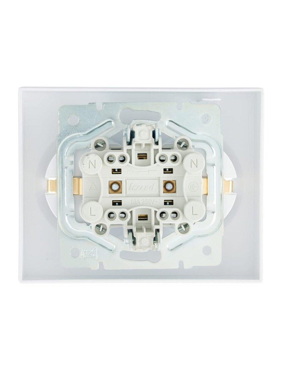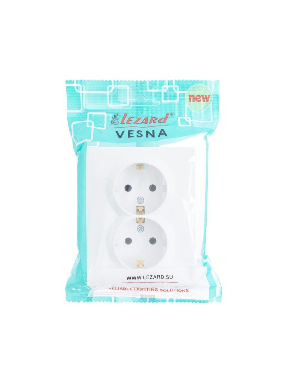 Розетка Lezard Vesna изготовлена из синтетического полимера с высокими показателями эластичности и ударопрочности. Подходит для установки в жилых и нежилых помещениях.