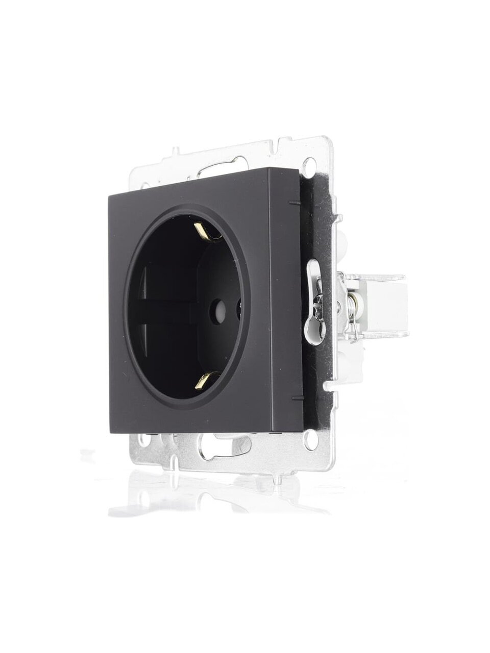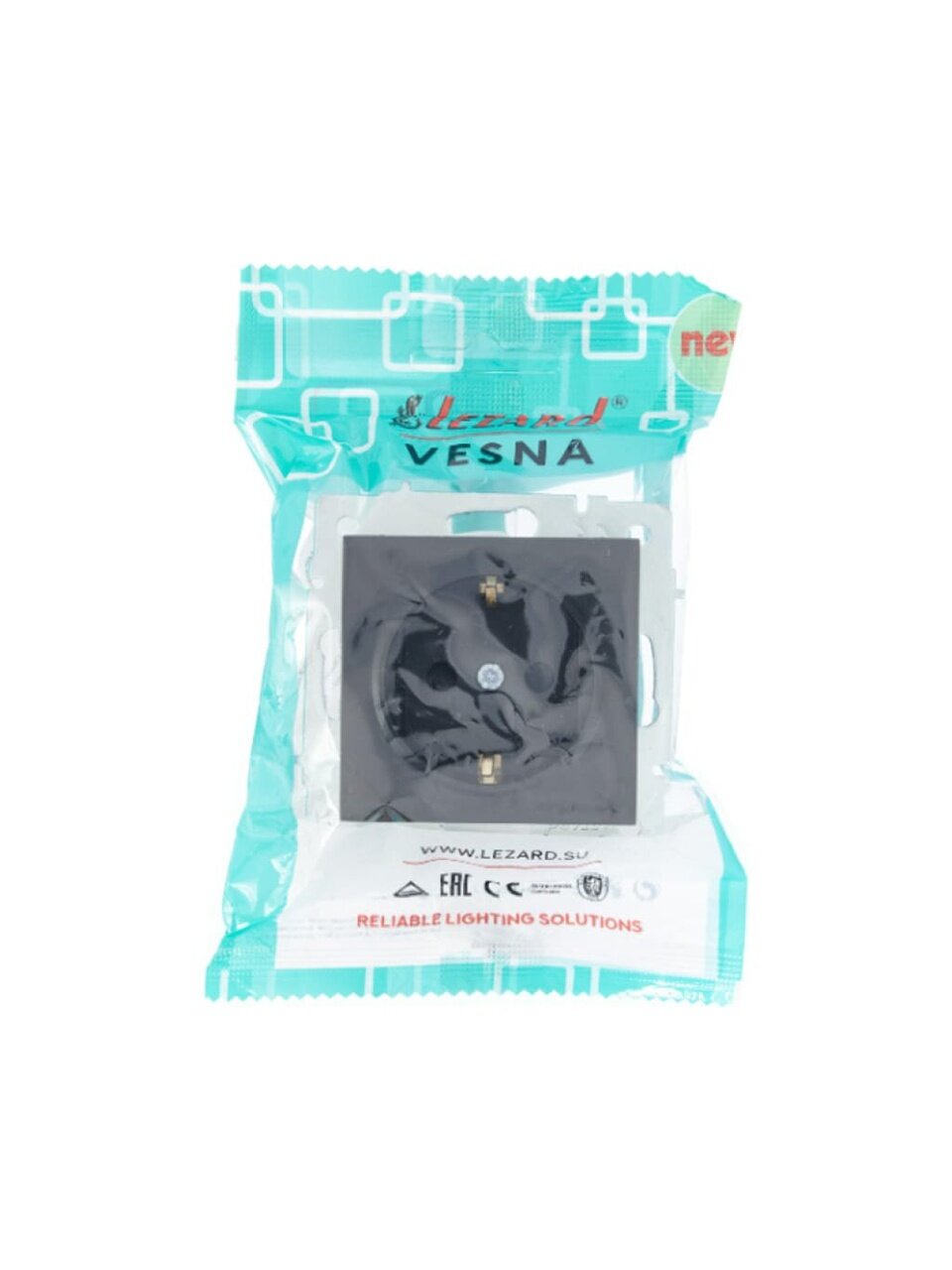 Розетка 1 гнездо, с заземлением, 16 А, 230 В, с защитными шторками, пластик, IP20, черный бархат, с защитой от детей ПБТ, Lezard, Vesna, 742-4288-124B