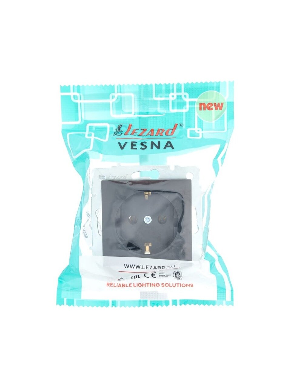 Розетка Lezard Vesna изготовлена из синтетического полимера с высокими показателями эластичности и ударопрочности. Подходит для установки в жилых и нежилых помещениях.