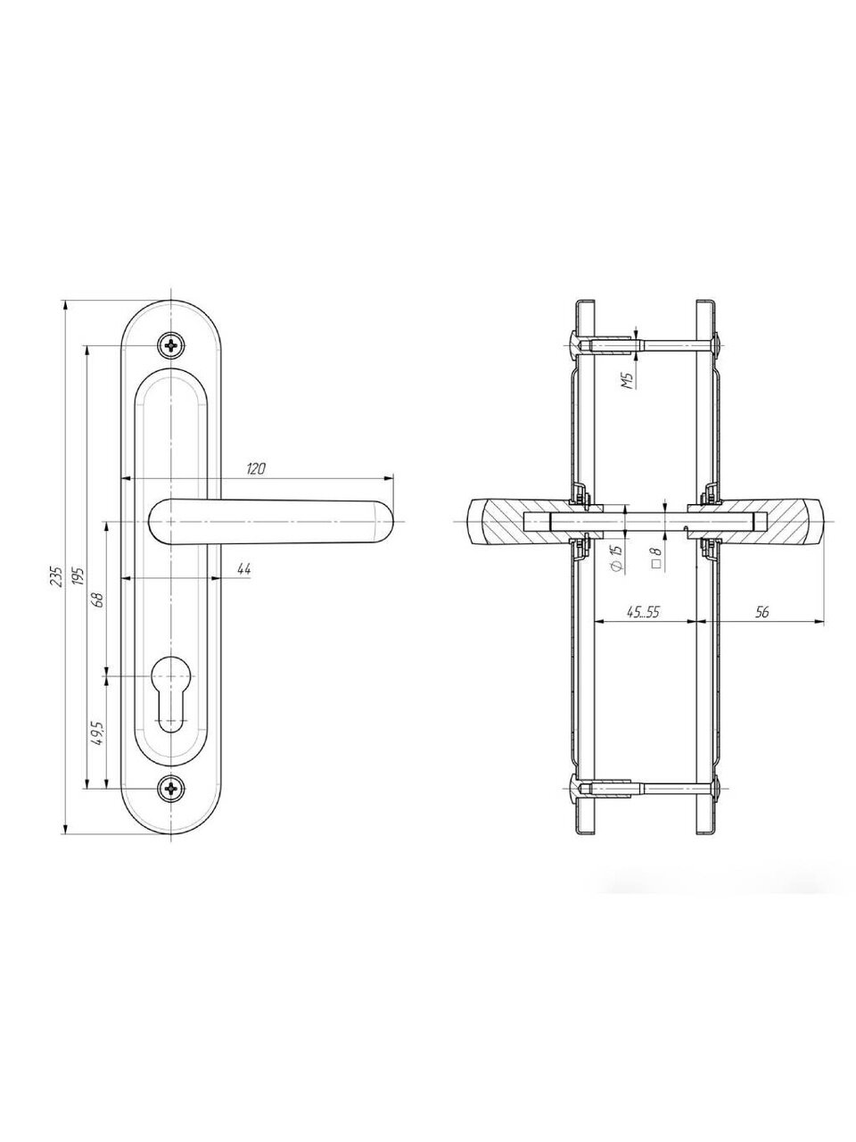 Ручка на планке под цилиндровый механизм. Предназначена для китайских металлических дверей, подходят для замков не автоматического закрывания.