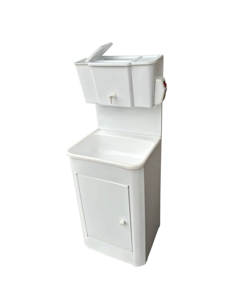 Прочный пластиковый бак и мойка обеспечивают долговечность и надежность конструкции, а металлическая тумба добавляет устойчивости и обеспечивает удобное хранение необходимых принадлежностей. Белый цвет изделия гармонично вписывается в любой интерьер, добавляя свежести и чистоты.