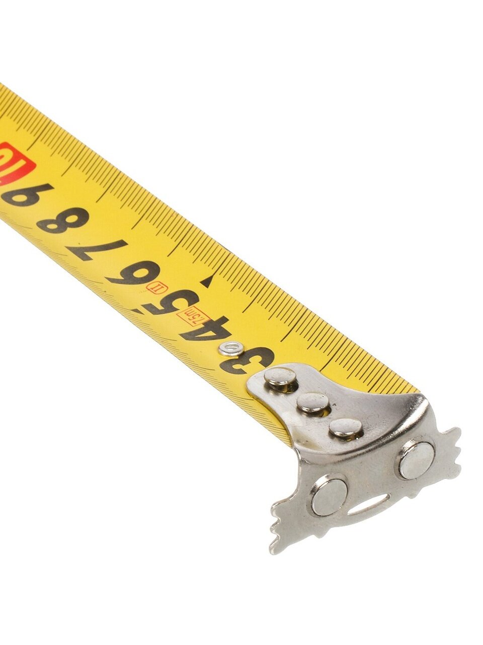 Рулетка измерительная Bartex JB-03 имеет обрезиненный корпус из ABS-пластика, который известен своей ударопрочностью, эластичностью, а также устойчивостью к кислотам, щелочам, маслам и воздействию тепла. Измерительная лента произведена из углеродистой стали с покрытием желтого цвета. Края ленты специально обточены во избежание случайных порезов при использовании.