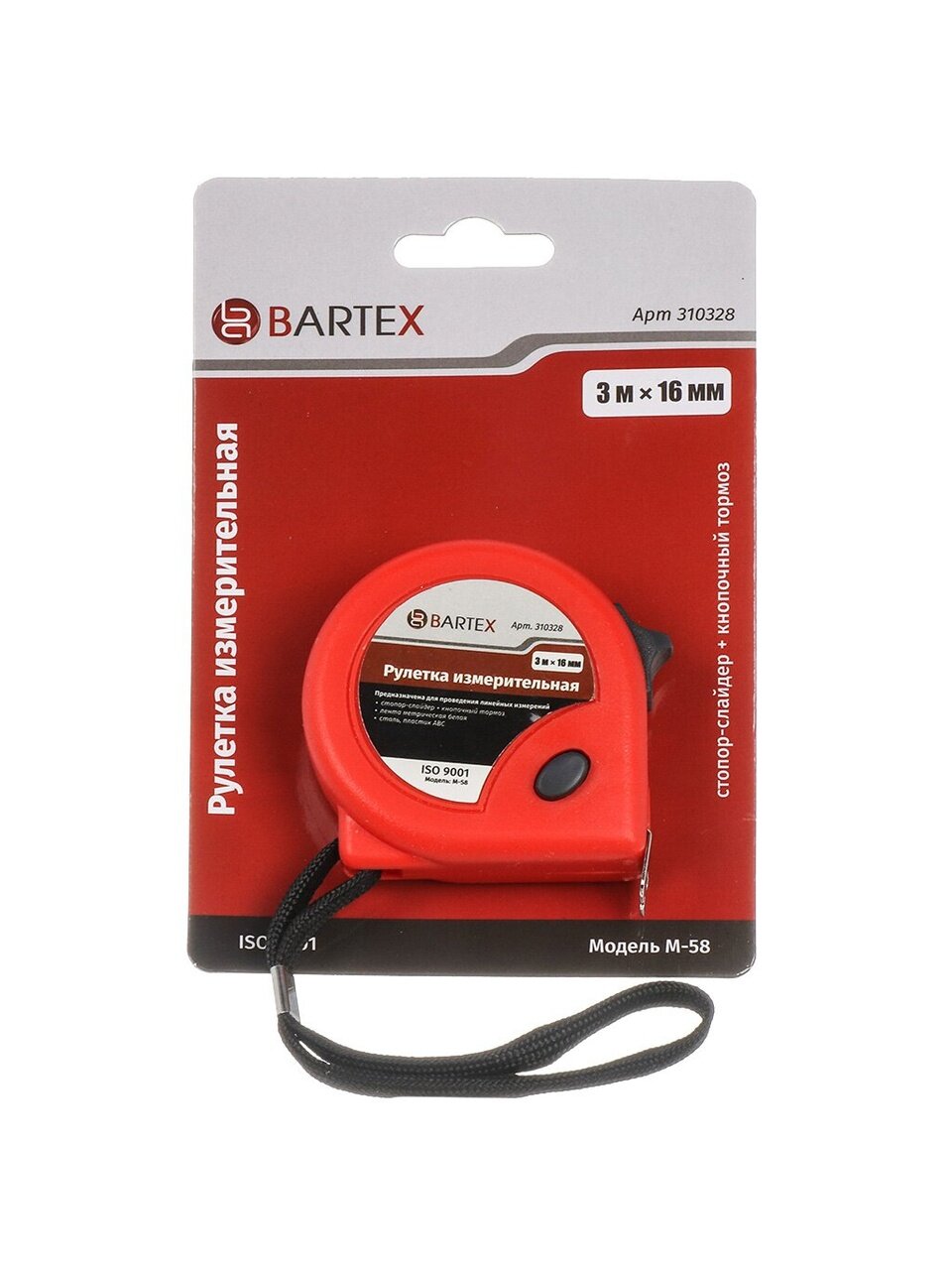 Рулетка 3х16 мм, с фиксатором, + кнопка, Bartex, M-58