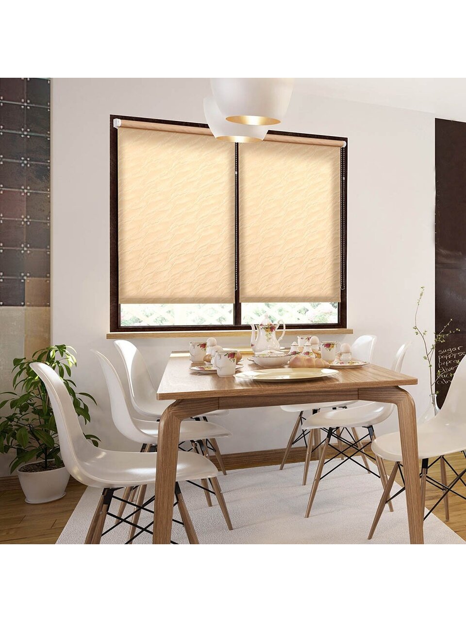 Штора рулонная регулирует освещение комнаты, опускается до любого желаемого уровня.