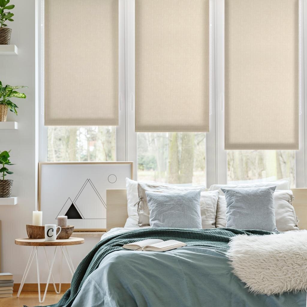 Рулонная штора Лен РБ, 160х57 см, ширина крепления 61 см, серая, Delfa, СРШ-01МЭ-2404