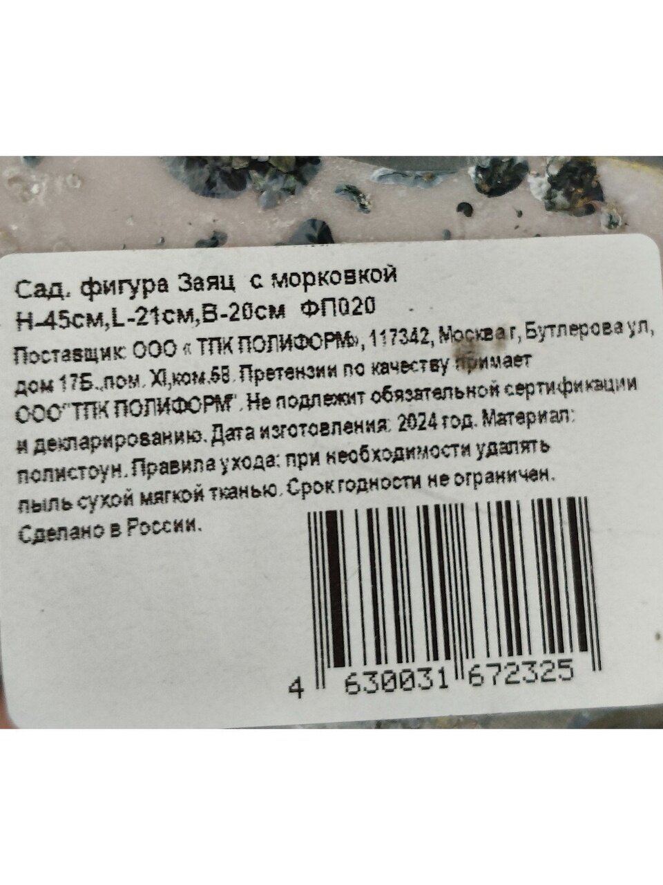 Вы можете приобрести «Фигурка садовая Заяц с морковью, 2х20х45 см, полистоун, ФП020» и другие товары в нашем интернет-магазине в Ельце по низким ценам и с бесплатным самовывозом.