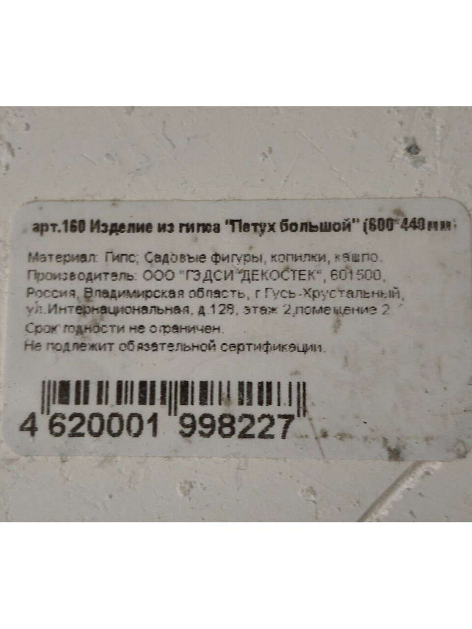 Вы можете приобрести «Фигурка садовая Петух большой, 44х60 см, гипс, 160» и другие товары в нашем интернет-магазине в Астрахани по низким ценам и с бесплатным самовывозом.