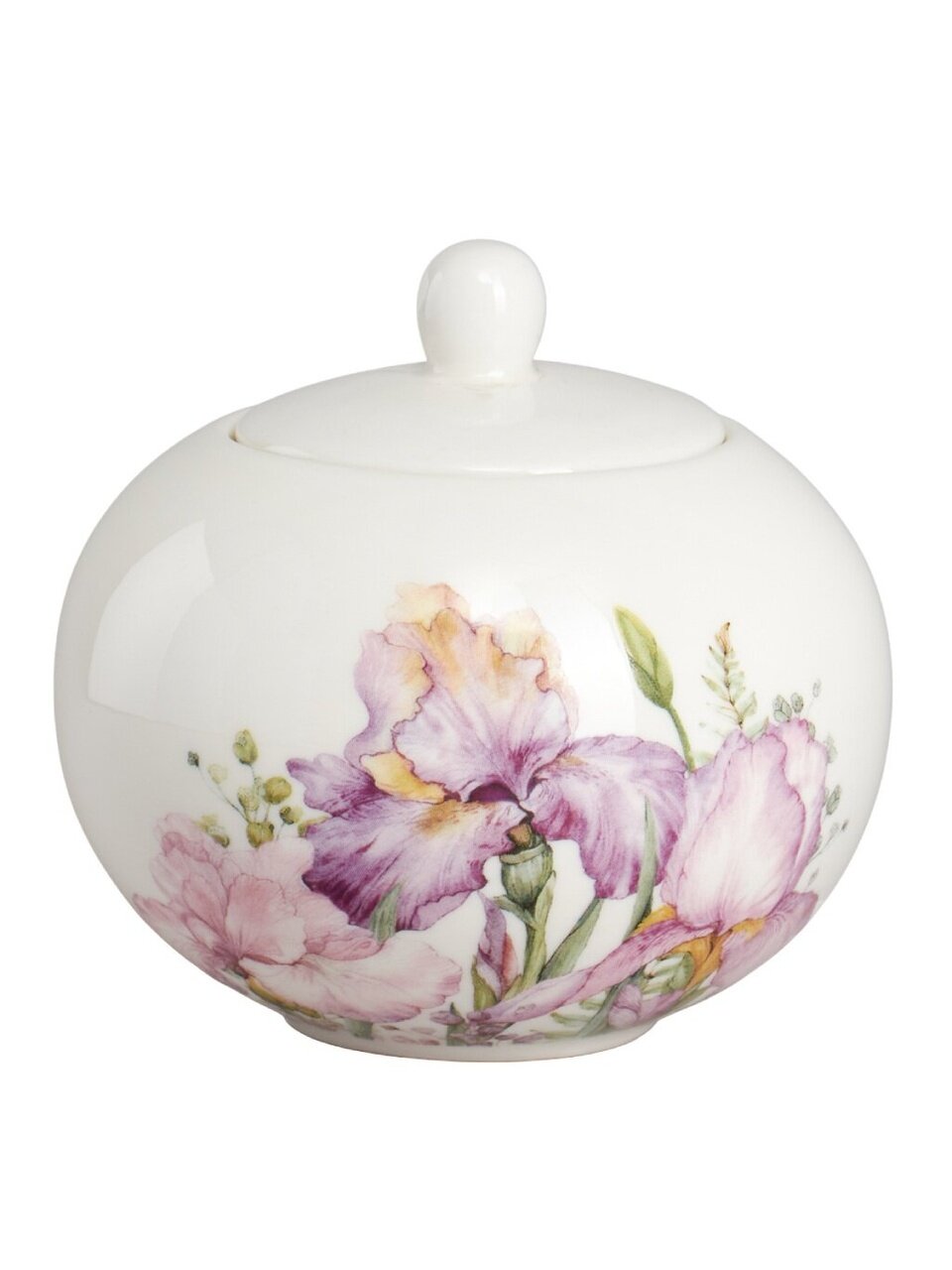 - изысканный дизайн: сахарница украшена изящными ирисами, которые добавят нотку элегантности в любой интерьер;