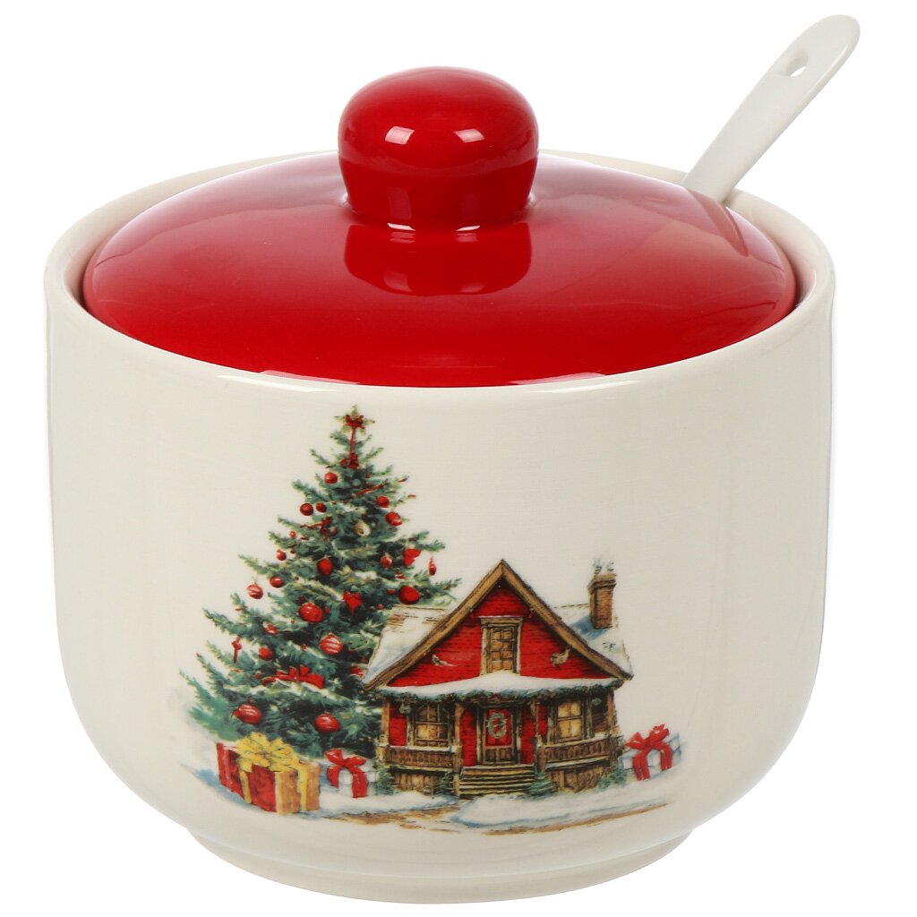Сахарница Daniks «Уютный дом» 500 мл из доломита с ложкой: стильный акцент для кухни, безопасное хранение сахара, идеальный подарок для уюта и заботы.