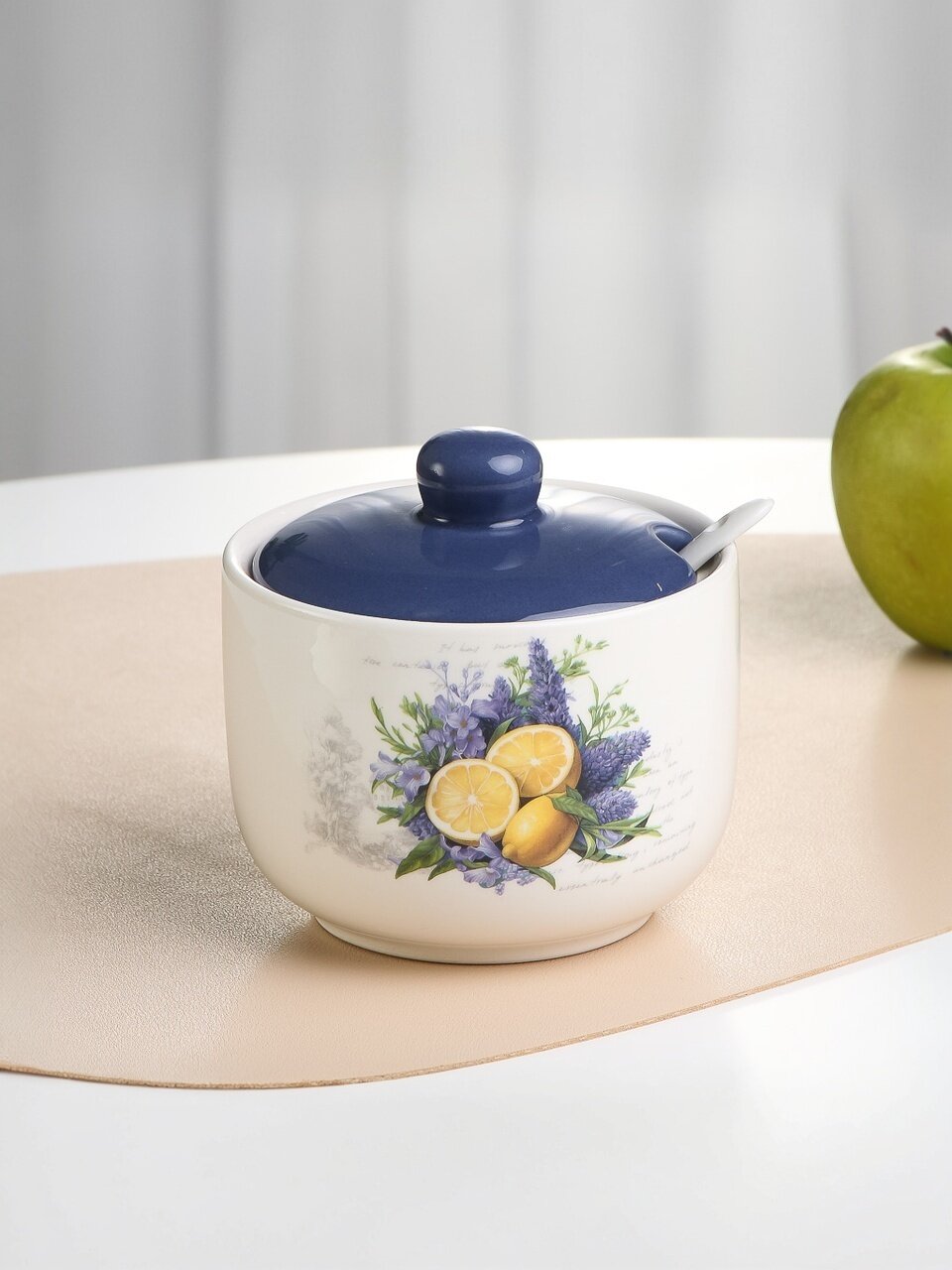 Сахарница 500 мл из доломита с ложкой Daniks «Лаванда»: стильный акцент для кухни и дачи, прочный материал, идеальный подарок ценителям уюта.