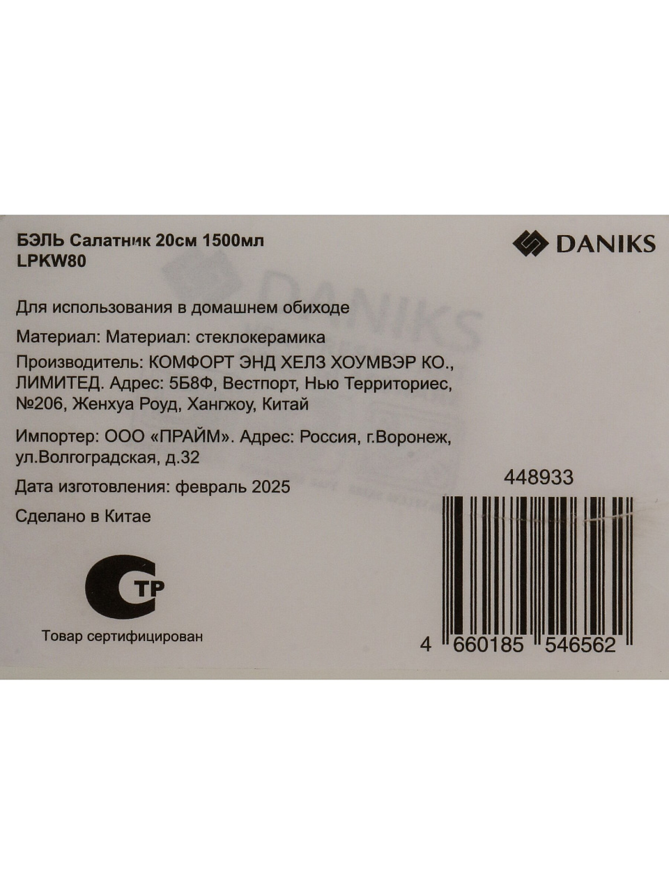 Вы можете приобрести «Салатник стеклокерамика, круглый, 20х8.3 см, 1500 мл, Бэль, Daniks, LPKW-80» и другие товары в нашем интернет-магазине в Тамбове по низким ценам и с бесплатным самовывозом.