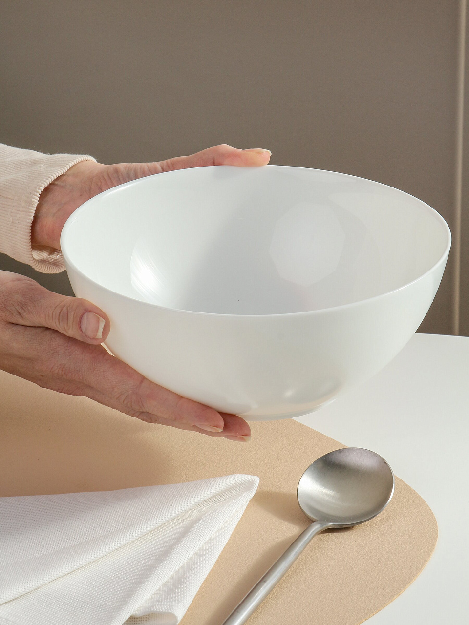 Салатник из стеклокерамики Daniks Бэль — это современное решение для кухни, где важны не только эстетика, но и функциональность. Белый однотонный дизайн в скандинавском стиле гармонирует с любой посудой, а круглая форма облегчает смешивание и подачу блюд. Стеклокерамика не впитывает запахи, устойчива к царапинам и безопасна для ежедневного использования. Такой салатник легко мыть — его можно помещать в посудомоечную машину, а также разогревать блюда прямо в микроволновке.