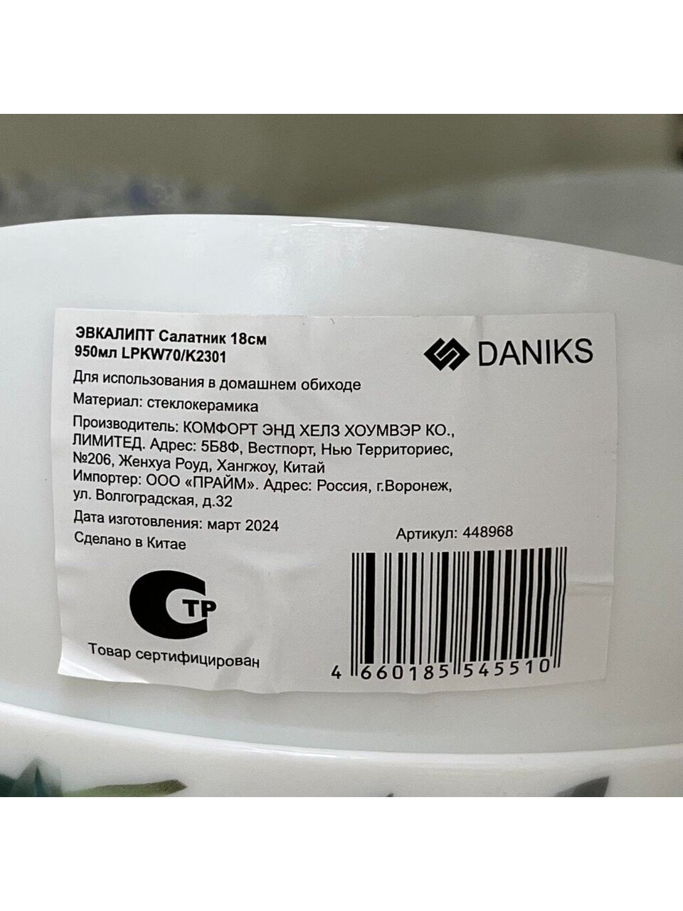 Салатник Daniks Эвкалипт 0.95 л: стеклокерамика, стиль прованс, подходит для СВЧ и посудомойки — идеальный выбор для сервировки и хранения.
