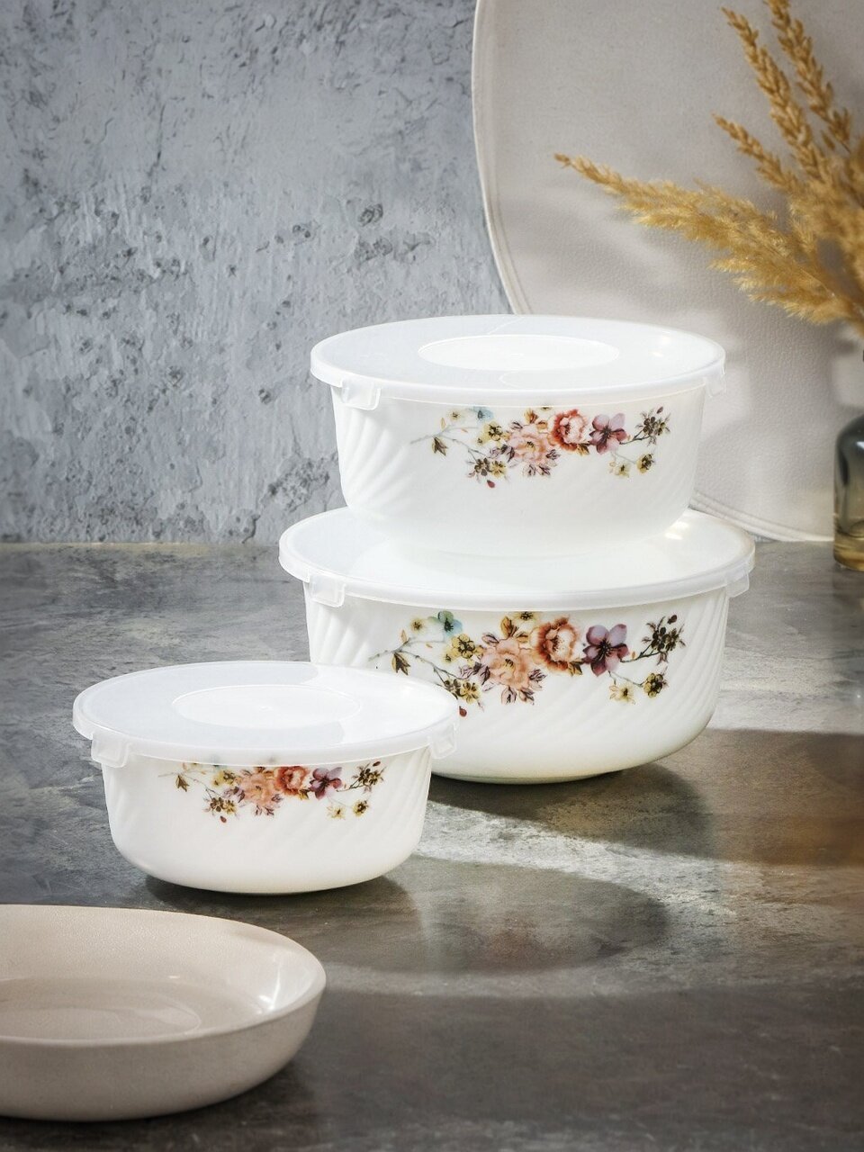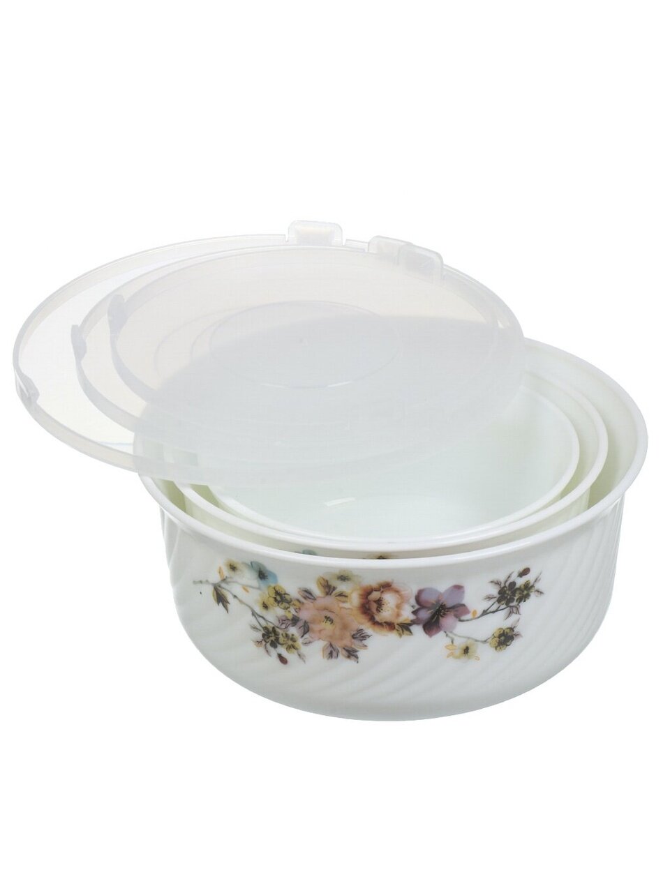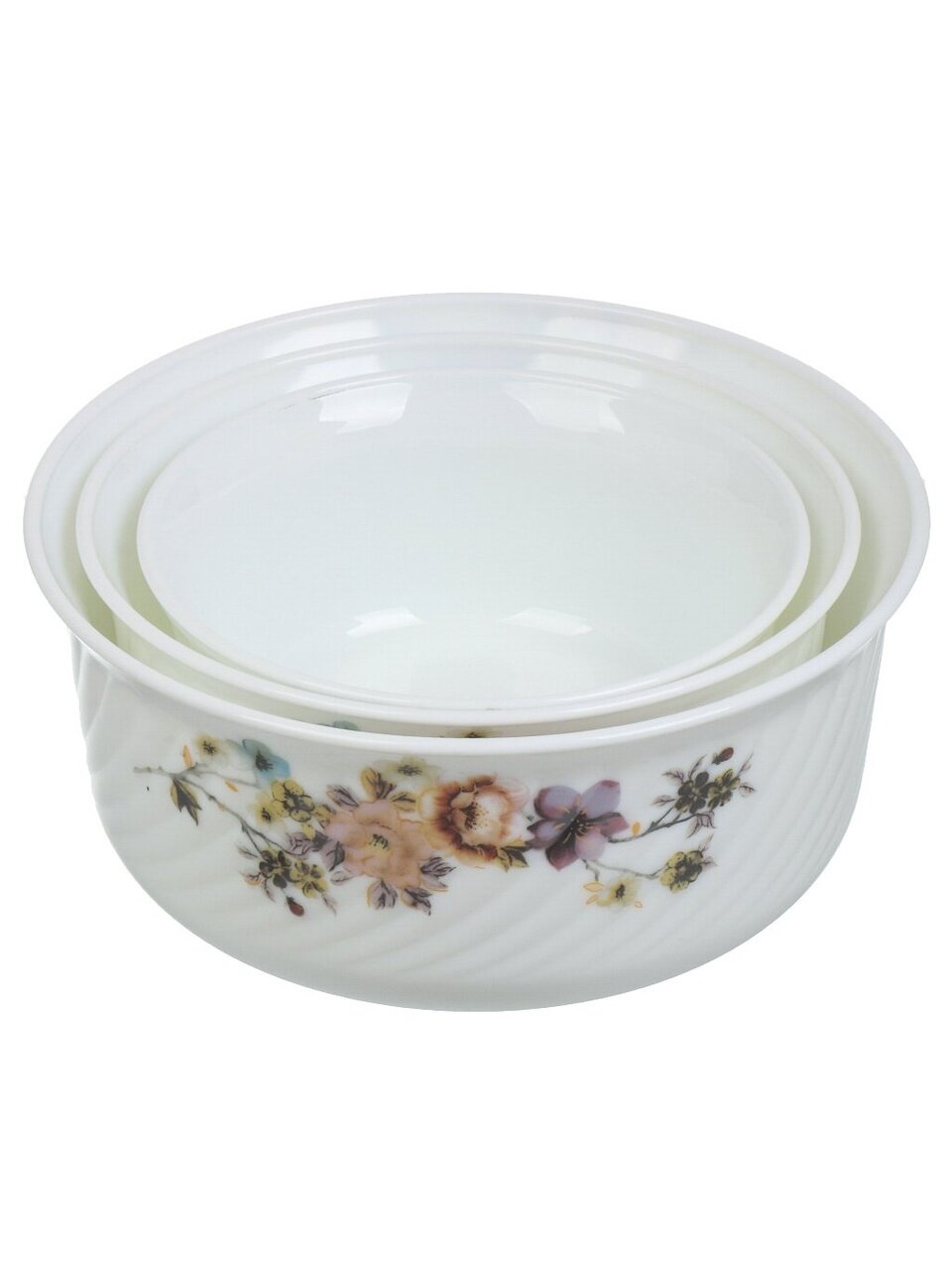 Чем отличается этот набор от аналогов? В отличие от обычных пластиковых салатников, стеклокерамика не впитывает запахи и устойчива к царапинам. Можно использовать в микроволновке и мыть в посудомоечной машине — это экономит время и силы. Дизайн с цветами в стиле прованс делает набор отличным подарком, даже если вы ищете купить недорого салатник для дачи или дома.