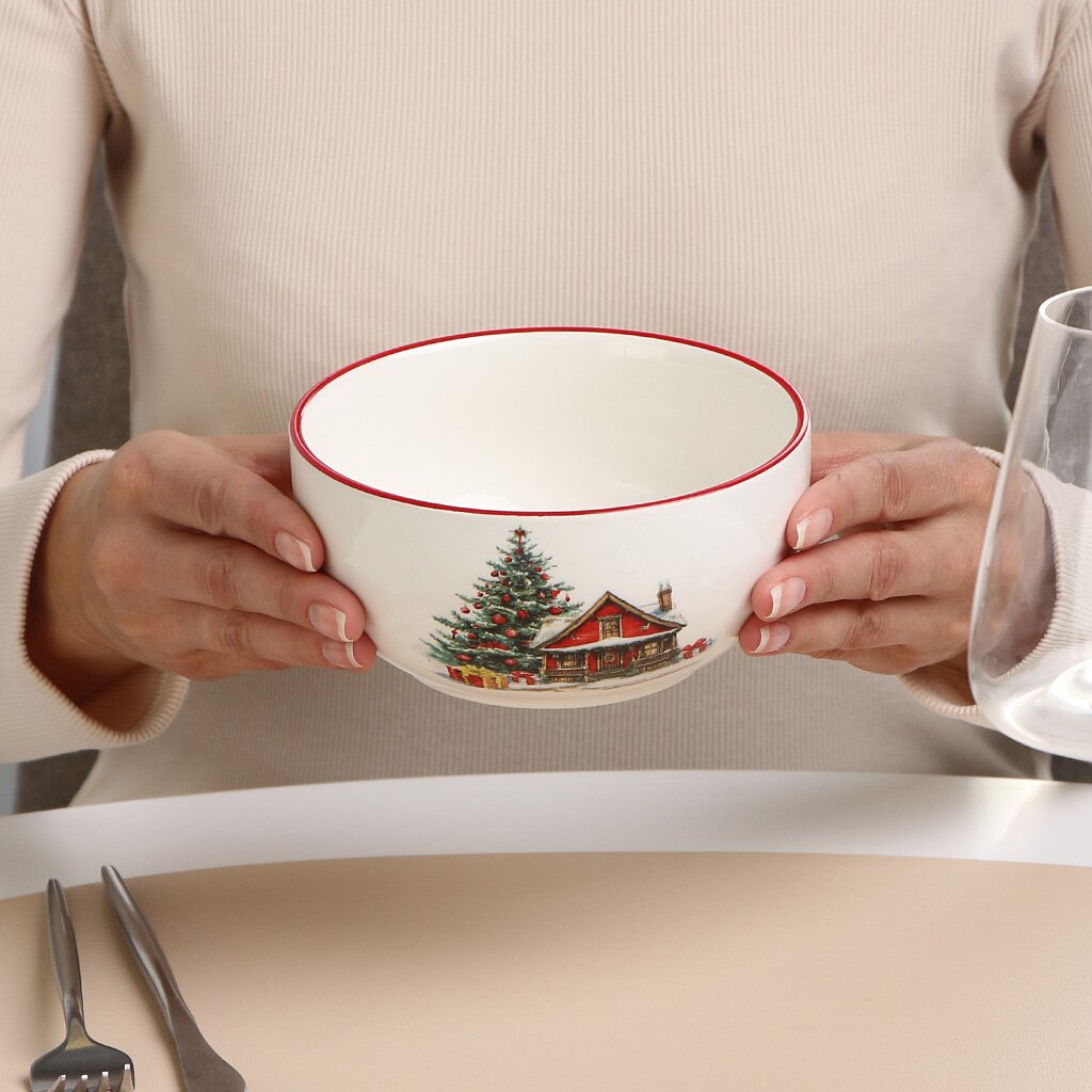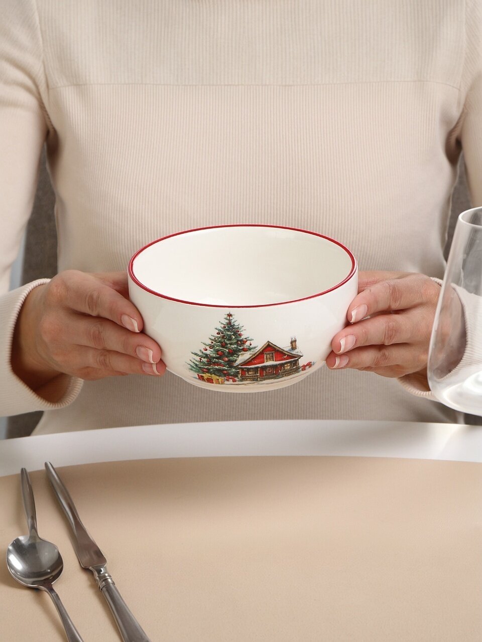Салатник Daniks из доломита — это современное решение для сервировки, сочетающее яркий красный цвет, новогодний рисунок и прочный материал. Благодаря округлой форме и объёму 0.58 л, он идеально подходит для подачи салатов, фруктов, десертов и закусок. Такой салатник часто выбирают те, кто ищет, какой салатник купить для подарка на Новый год, или интересуется, что лучше для сервировки праздничного стола.