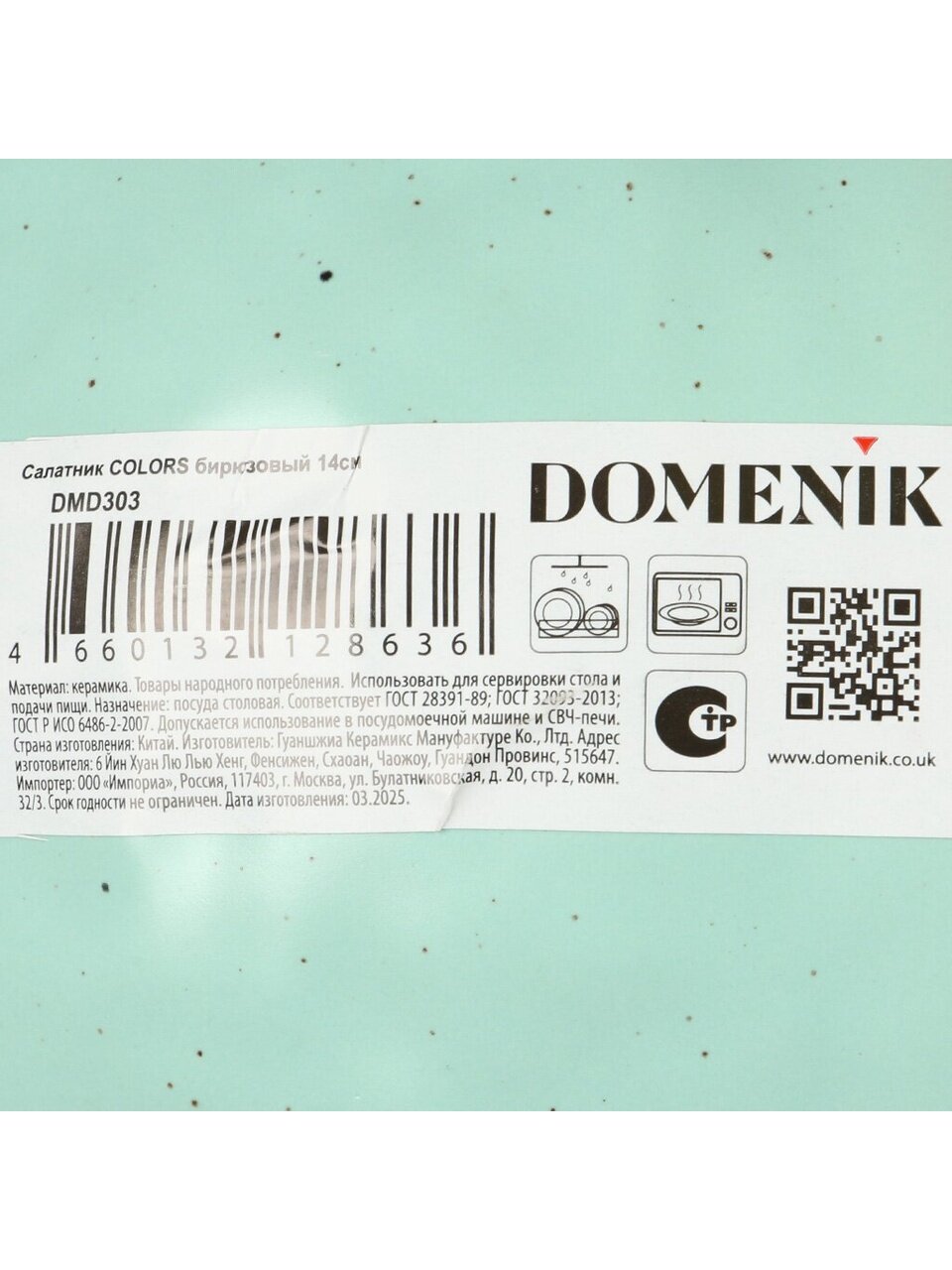 Салатник керамический Domenik Colors 14 см — стильное решение для сервировки, прочная керамика и оптимальный объём 0,55 л для ежедневного использования дома и на даче.