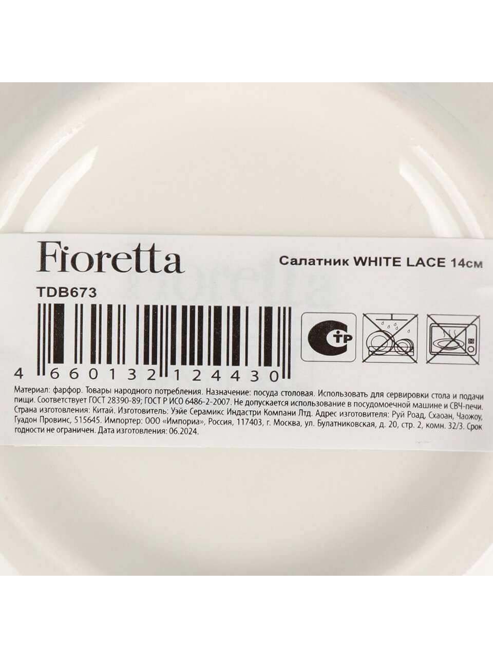 Вы можете приобрести «Салатник фарфор, круглый, 14х6 см, White Lace, Fioretta, TDB673» и другие товары в нашем интернет-магазине в Воронеже по низким ценам и с бесплатным самовывозом.