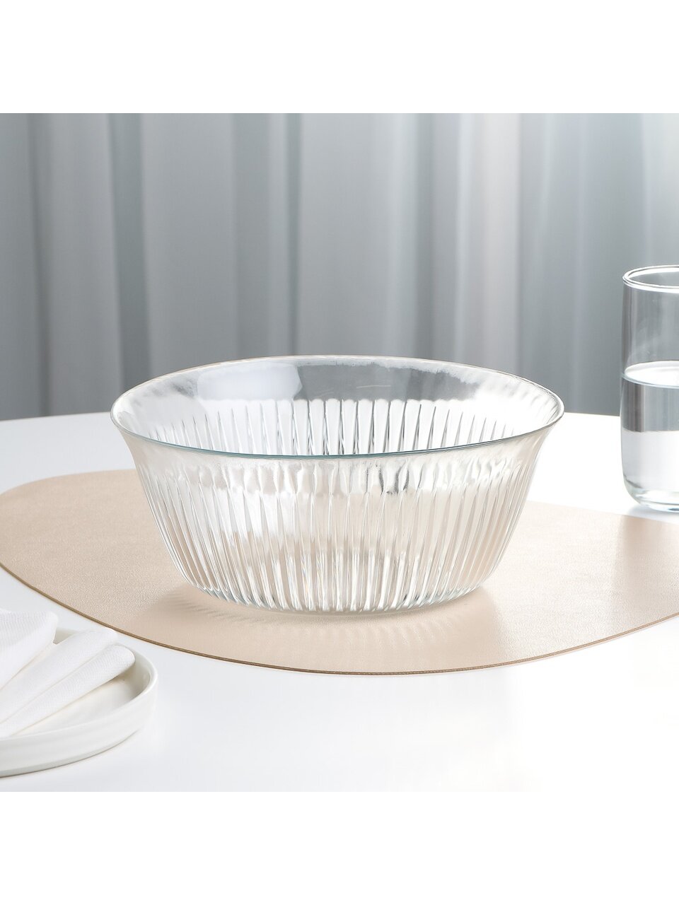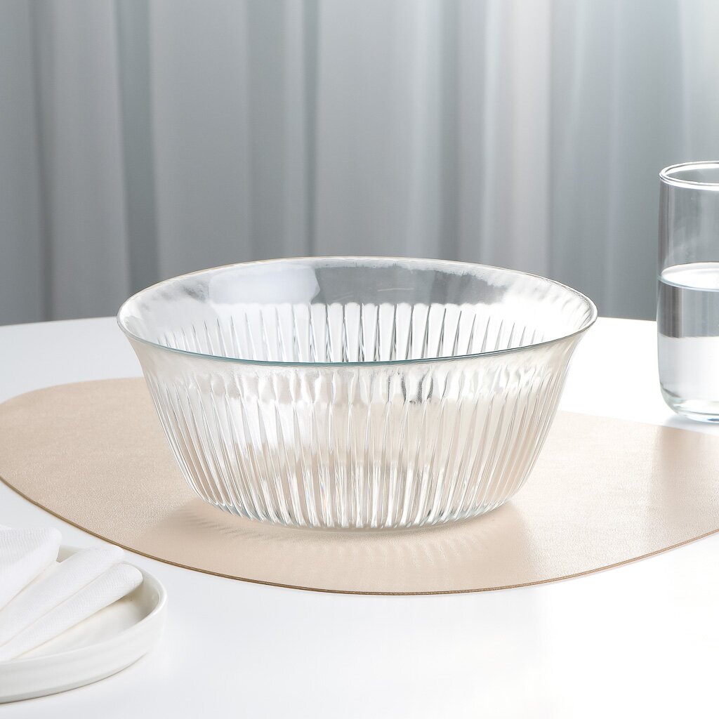 - Эстетика и универсальность — прозрачное стекло с рельефным узором гармонично впишется в любой интерьер, подчеркивая свежесть блюд.