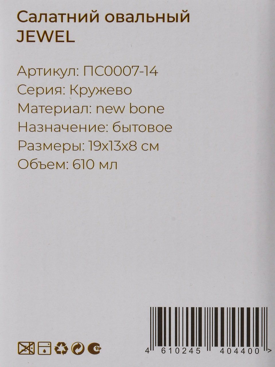 Салатник фарфор, овальный, 19 см, 0.61 л, Кружево, Jewel, ПС0007-14