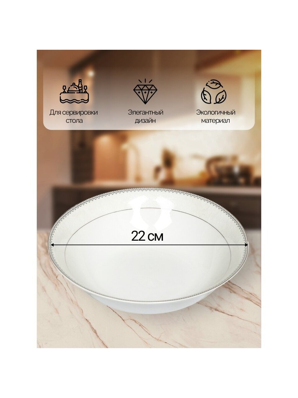 Салатник фарфор 22х6 см Harmony Fioretta — стильное решение для сервировки и хранения салатов, фруктов и закусок. Идеально для дома, дачи, подарка. Безопасный материал, трендовый дизайн, универсальный размер.