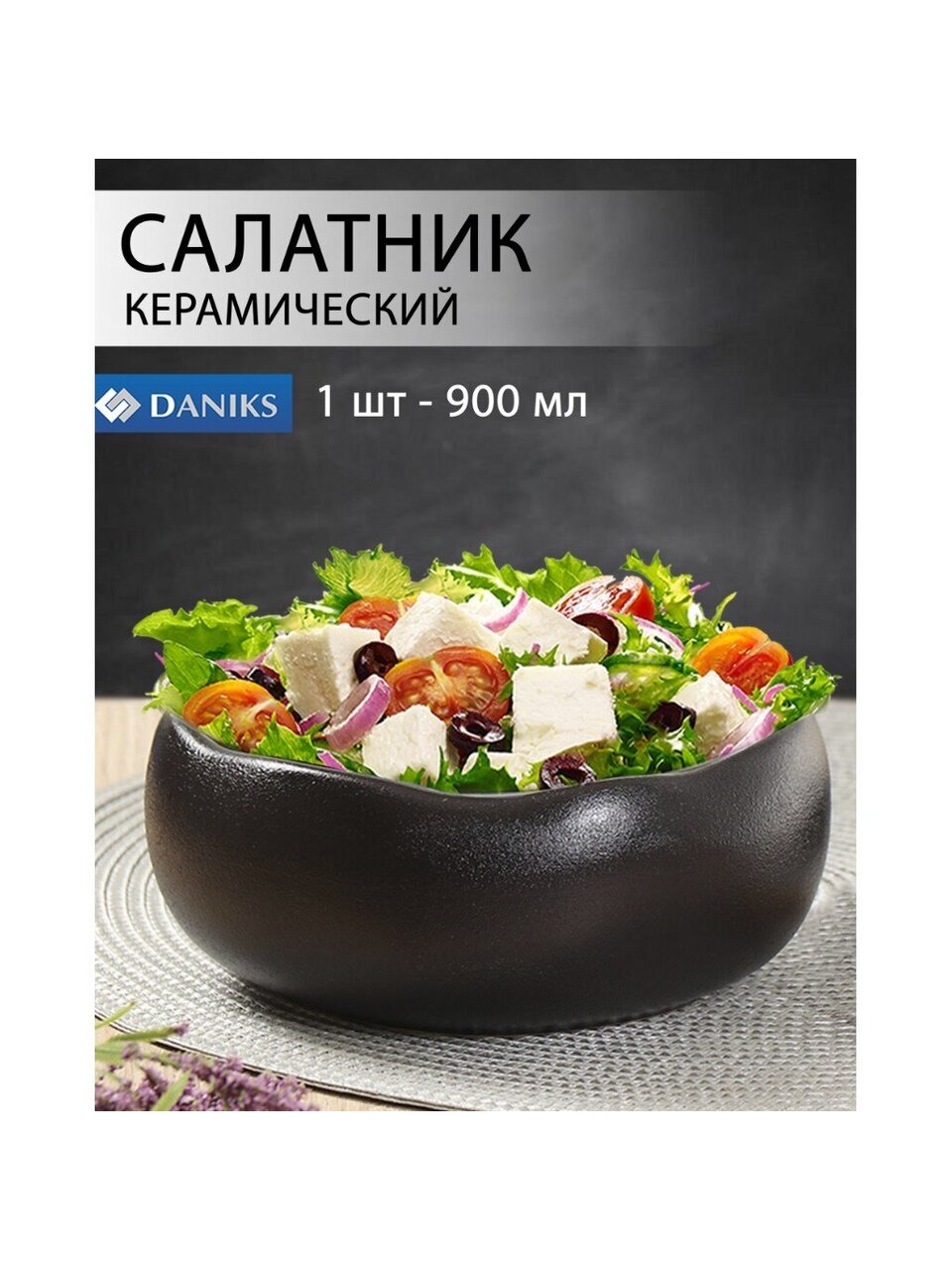 Салатник Daniks Крафт, 0.9 л: керамика премиум-класса для стильной сервировки дома и на даче. Безопасен для СВЧ и посудомоечных машин.