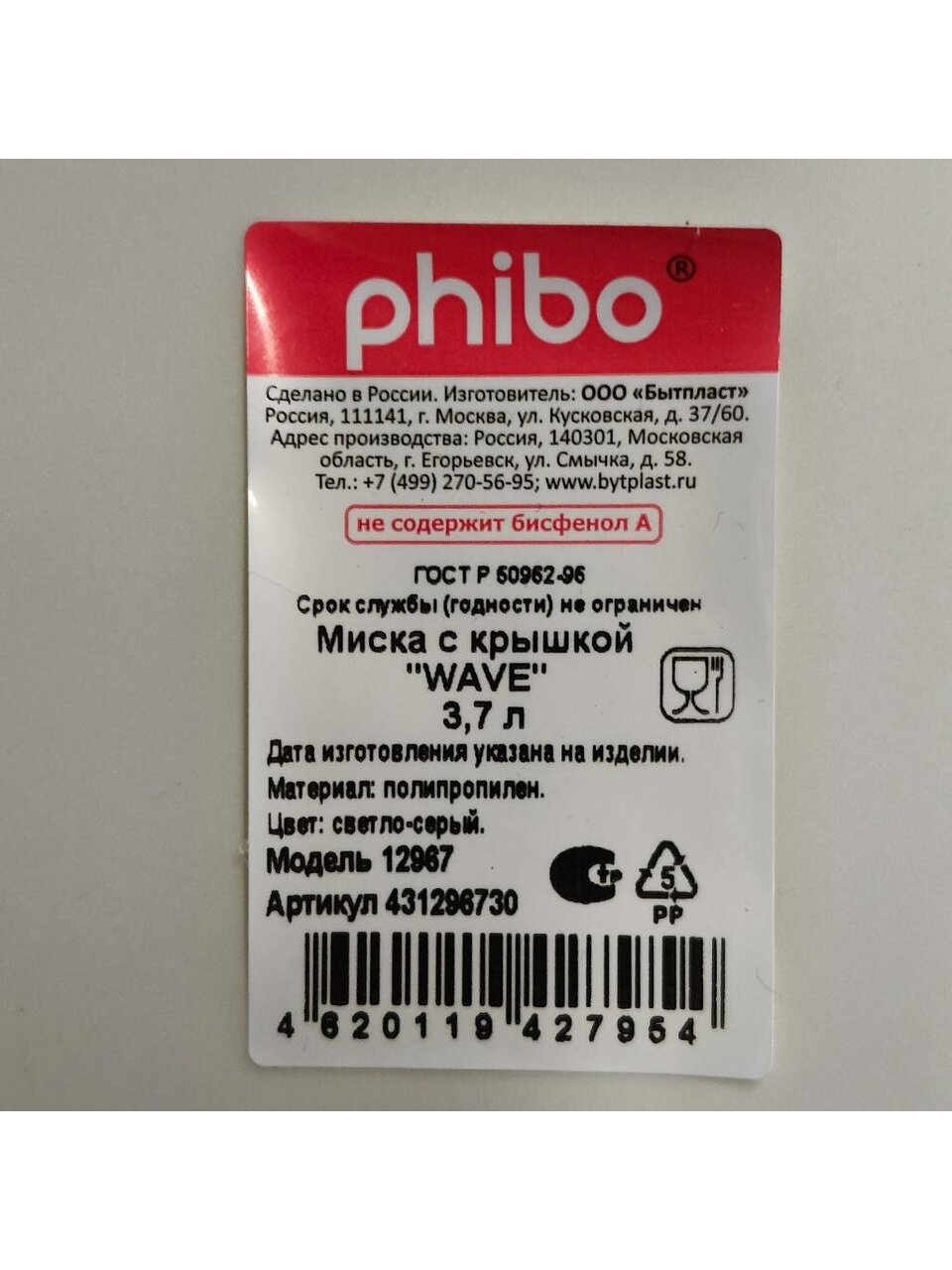 Вы можете приобрести «Миска пластик, круглая, 10.5 см, 3.7 л, с крышкой, Wave, Бытпласт, С12967» и другие товары в нашем интернет-магазине в Шахтах по низким ценам и с бесплатным самовывозом.