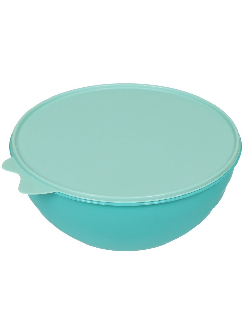 Круглая пластиковая миска 3,7 л с крышкой Bytplast Wave — удобно хранить и брать с собой, подходит для СВЧ и мытья в посудомоечной машине. Идеальный выбор для дома и дачи.