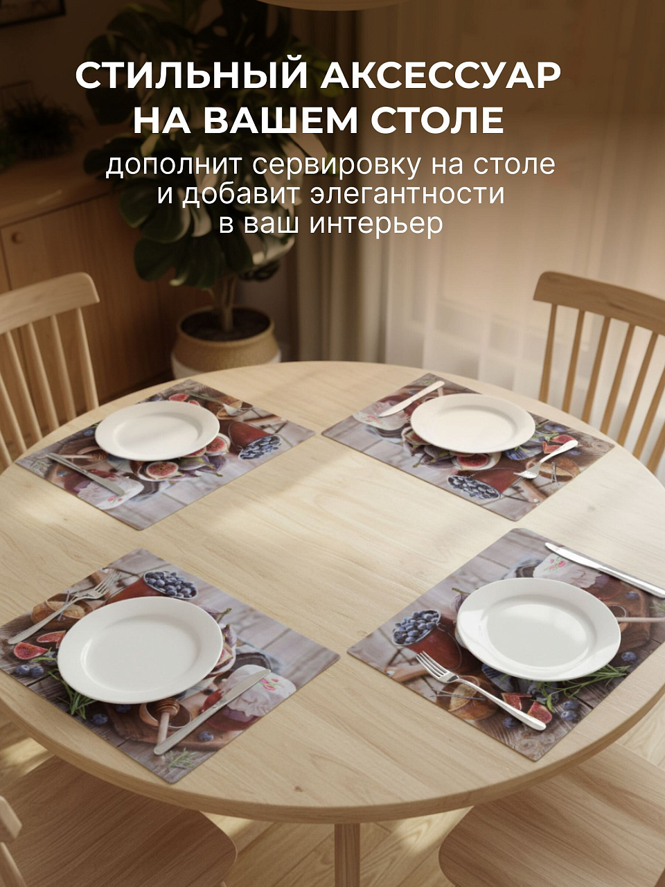 Изысканный набор салфеток для стола из пластика "Инжир" — идеальное решение для стильной и практичной сервировки. Прямоугольная форма и оригинальный рисунок гармонично впишутся в любой интерьер кухни или столовой. Размер 40х28 см обеспечивает удобство использования, а комплект из 4 штук подойдет для всей семьи.