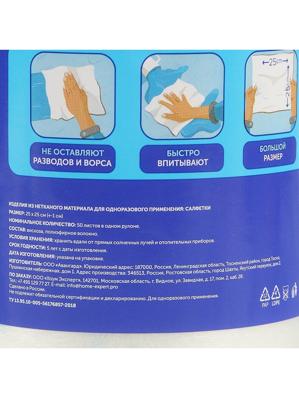 В одном рулоне — 50 салфеток. Просто оторвите нужное количество листов, используйте для уборки и выбросьте после применения — экономия времени и сил без лишней стирки.