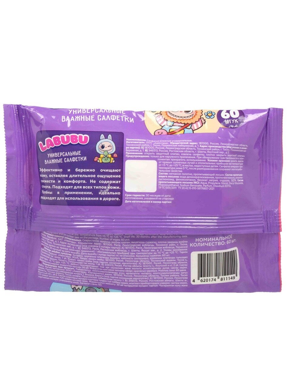 Салфетки влажные Labubu, детские, 60 шт, универсальные — удобное решение для ежедневной гигиены малышей и всей семьи. Прочные и мягкие, подходят для любых случаев: дома, на прогулке, в дороге. Упаковка содержит 60 салфеток, что обеспечивает длительное использование. Ассортимент универсальных салфеток поможет поддерживать чистоту и свежесть в любой ситуации.