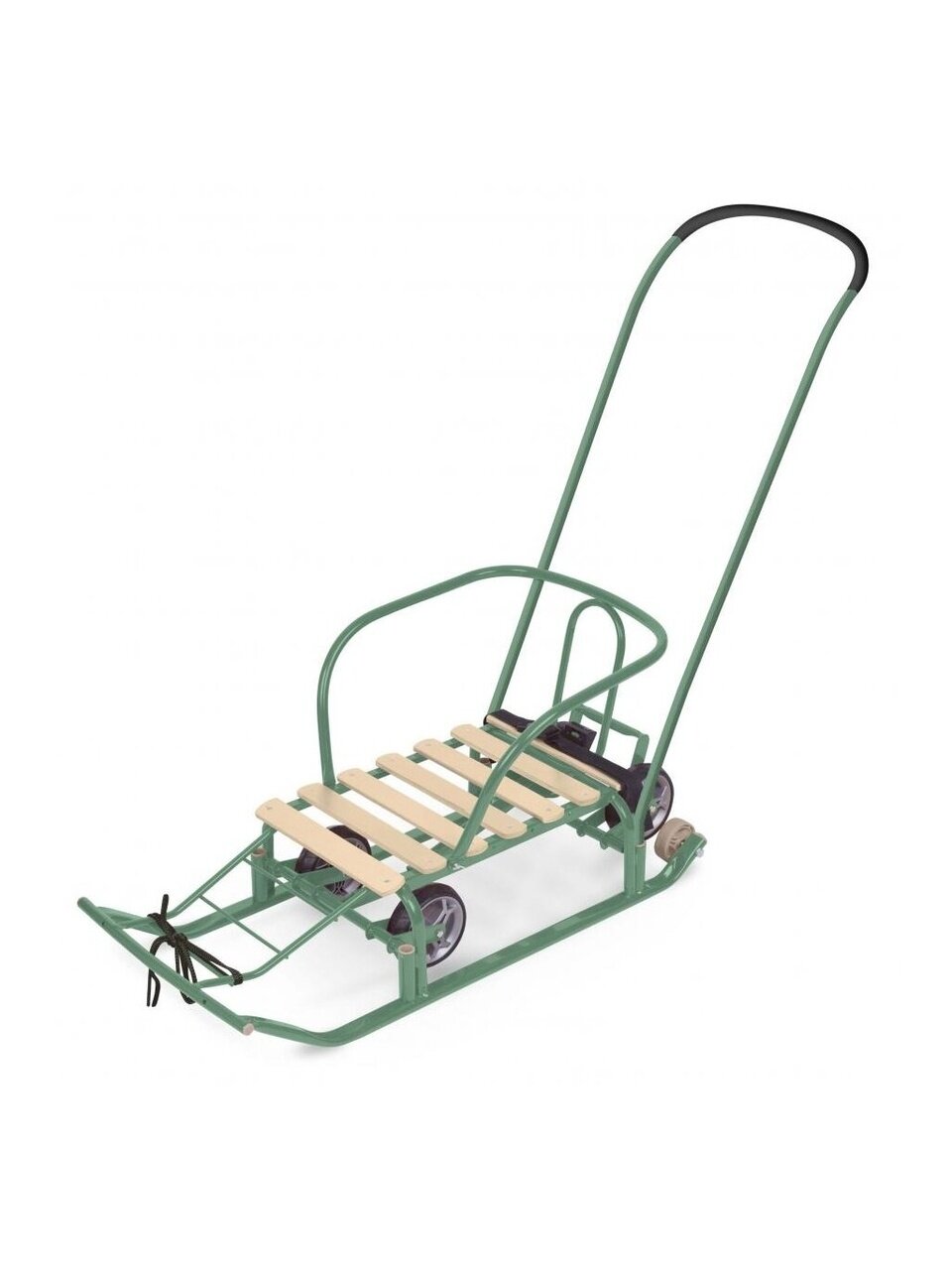 Санки Тимка 5, Т5У/ОЛ, универальные, переставная ручка, ремень безопасности, колеса на полозьях, оливковые, Nika