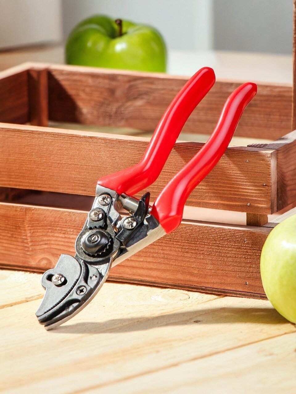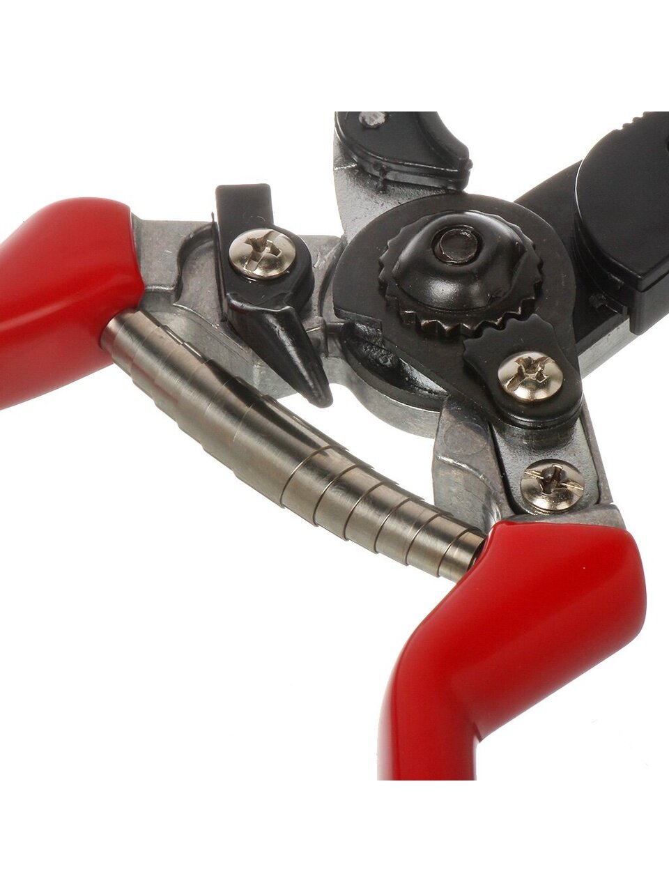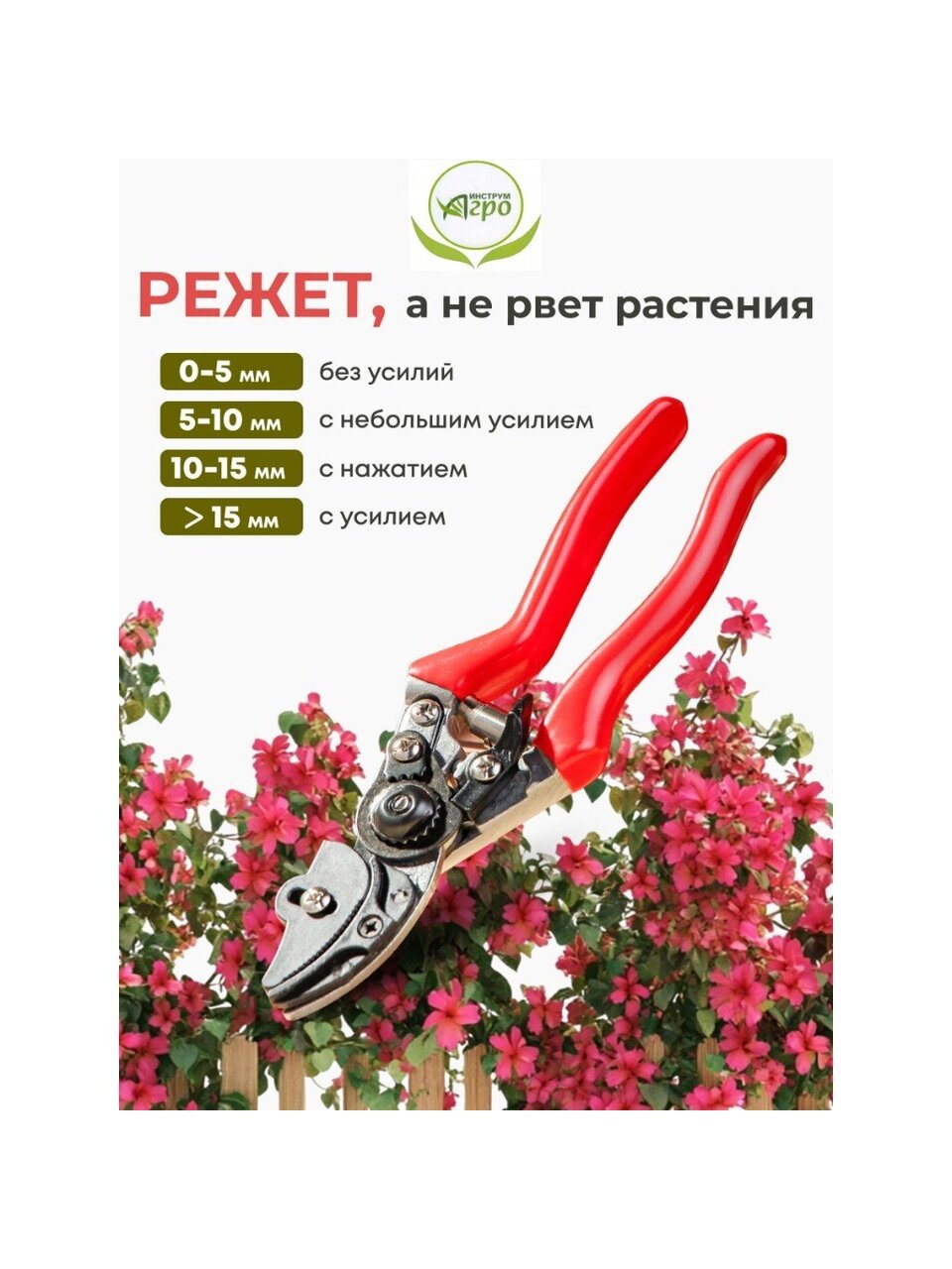 Особенностью даннного секатора является наличие зажимного механизма, с помошью которого можно удерживать после срезки цветок (удобство работы одной рукой).