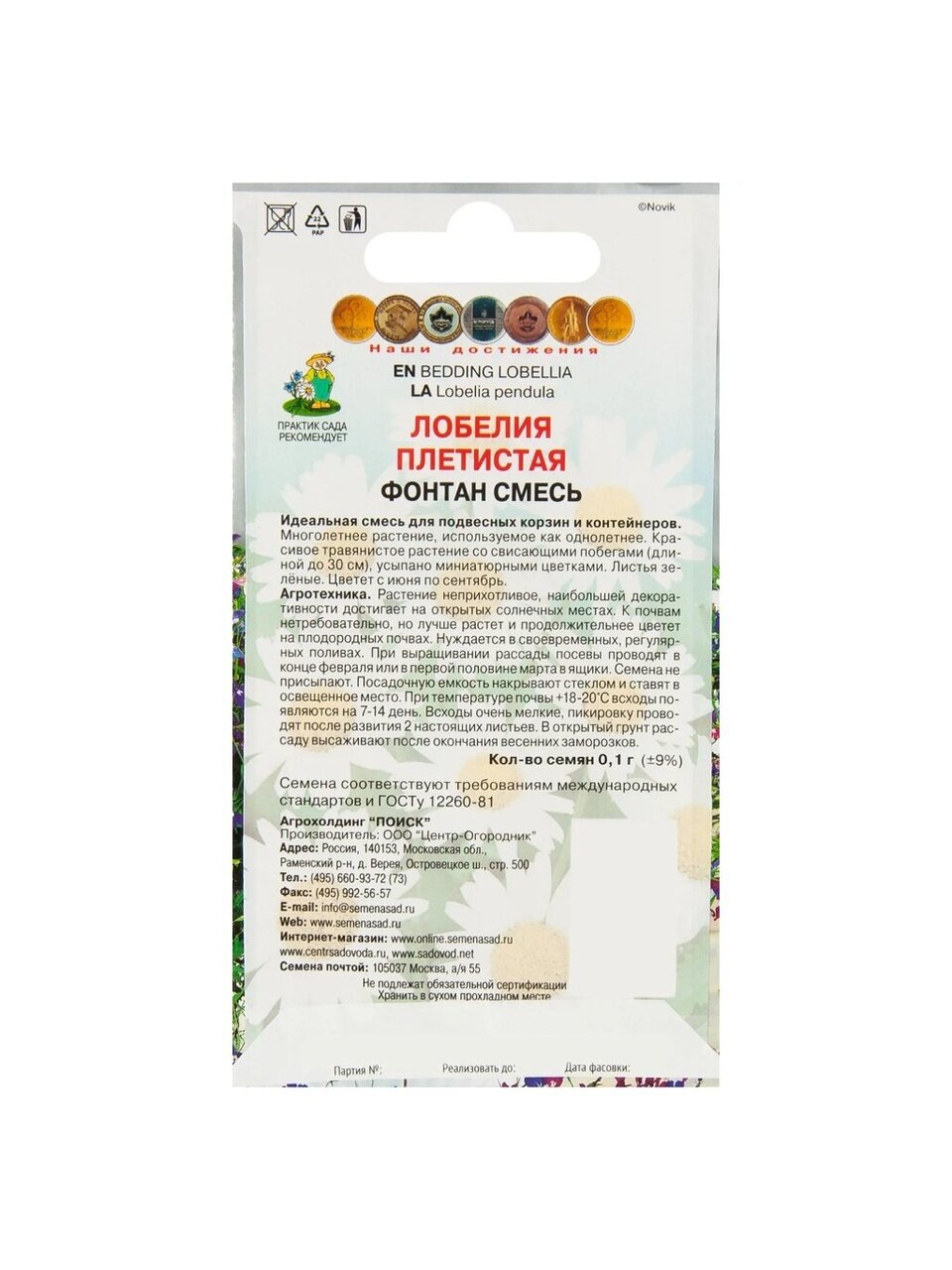 Вы можете приобрести «Семена Цветы, Лобелия плетистая, Фонтан, 0.1 г, смесь, цветная упаковка, Поиск» и другие товары в нашем интернет-магазине в Коврове по низким ценам и с бесплатным самовывозом.