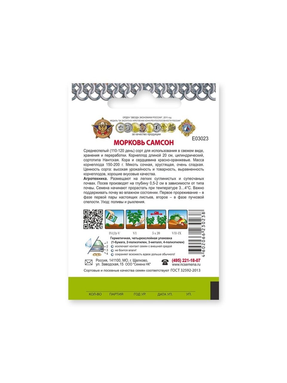 - Качественная цветная упаковка: обеспечивает надежную сохранность семян.
