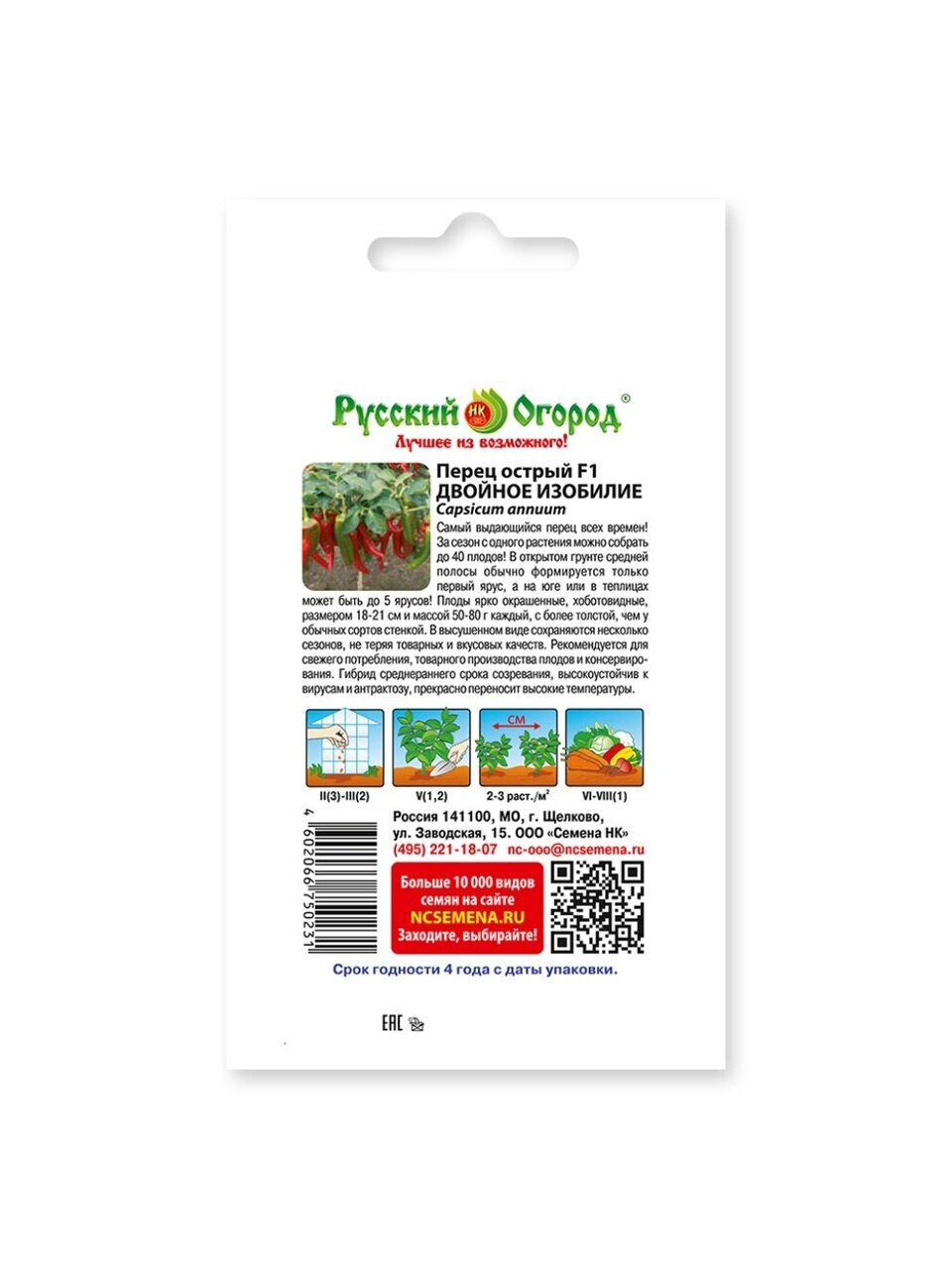 Вы можете приобрести «Семена Перец острый, Двойное изобилие F1, цветная упаковка, Русский огород» и другие товары в нашем интернет-магазине в Воронеже по низким ценам и с бесплатным самовывозом.