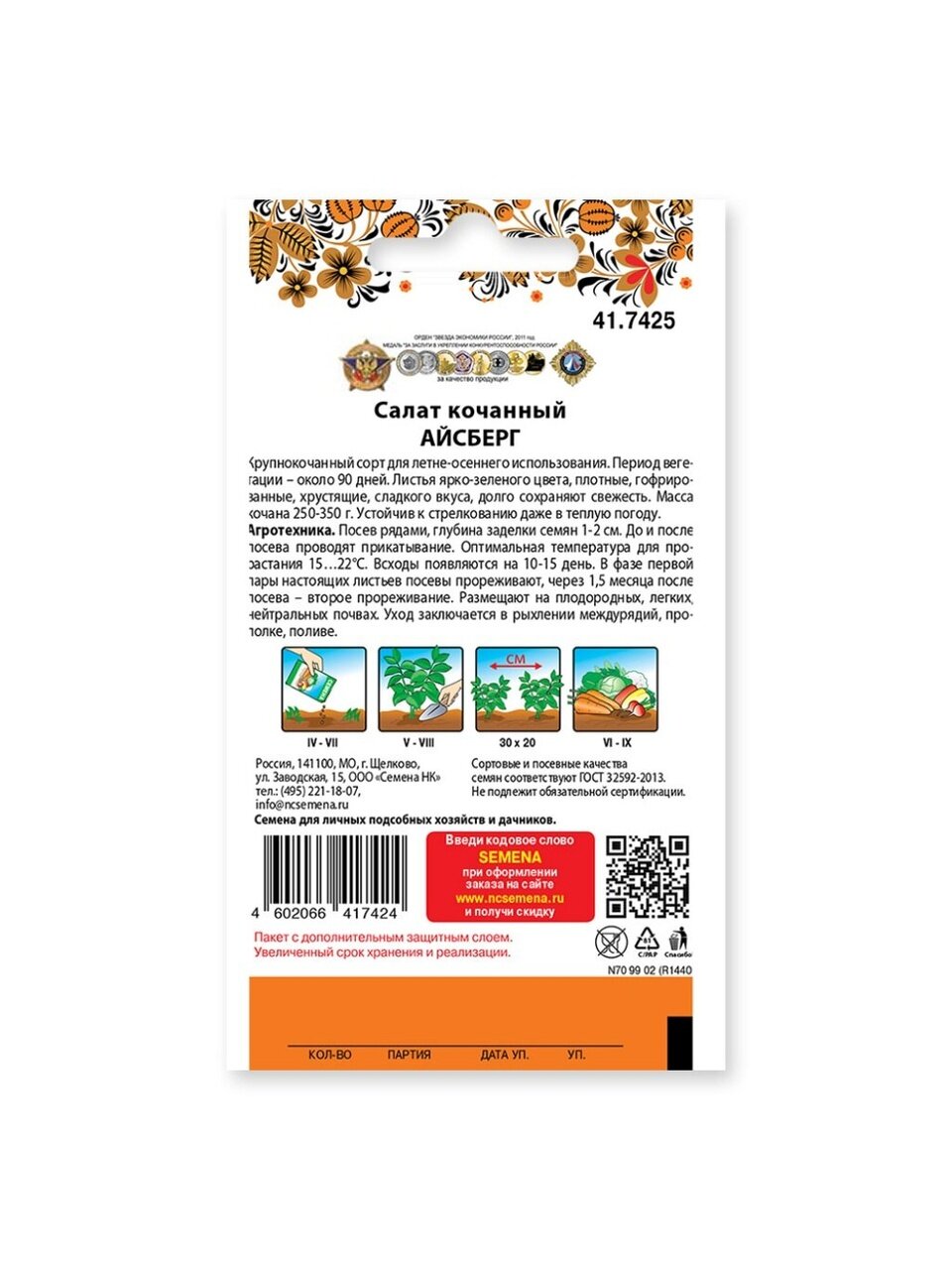 Вы можете приобрести «Семена Салат кочанный, Айсберг, 2 г, 200% NEW, цветная упаковка, Русский огород» и другие товары в нашем интернет-магазине в Смоленске по низким ценам и с бесплатным самовывозом.