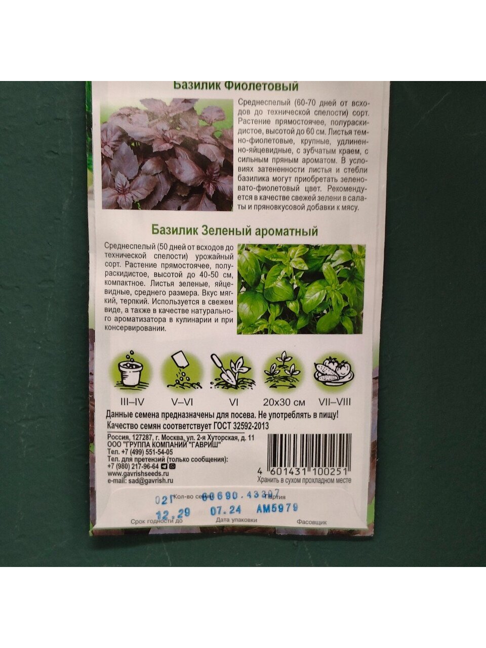 Откройте для себя гармонию вкусов с семенами базилика "Дуэт" от бренда Гавриш! Это идеальное сочетание фиолетового и зеленого ароматного базилика. Наслаждайтесь среднеспелым урожаем, который станет ярким акцентом на вашем столе.