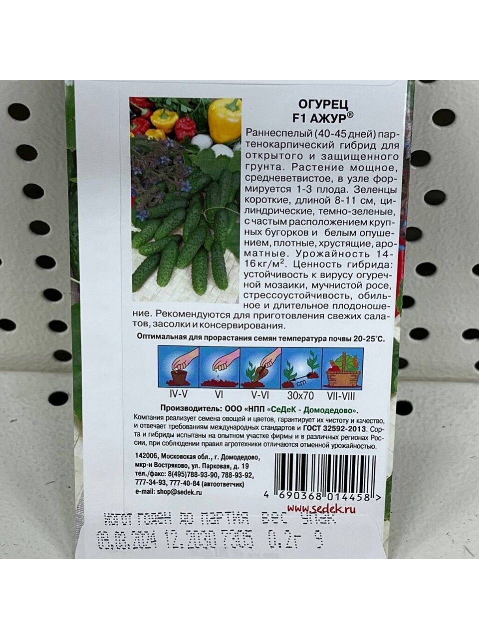 Вы можете приобрести «Семена Огурец, Ажур F1, 0.2 г, цветная упаковка, Седек» и другие товары в нашем интернет-магазине в Старом Осколе по низким ценам и с бесплатным самовывозом.