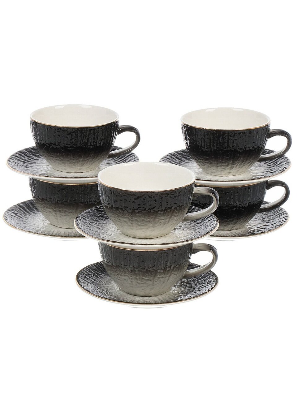 Набор чайных пар Daniks Графит из 12 предметов — это оптимальный выбор для тех, кто ищет, какой чайный сервиз купить для ежедневного использования или подарка. Керамические чашки и блюдца с изысканным градиентом и золотой каймой гармонично впишутся в современный интерьер и станут акцентом на вашем столе. Благодаря объёму 220 мл удобно пить чай или кофе, а прочная керамика устойчива к сколам и сохраняет температуру напитка дольше, чем стекло или фаянс.