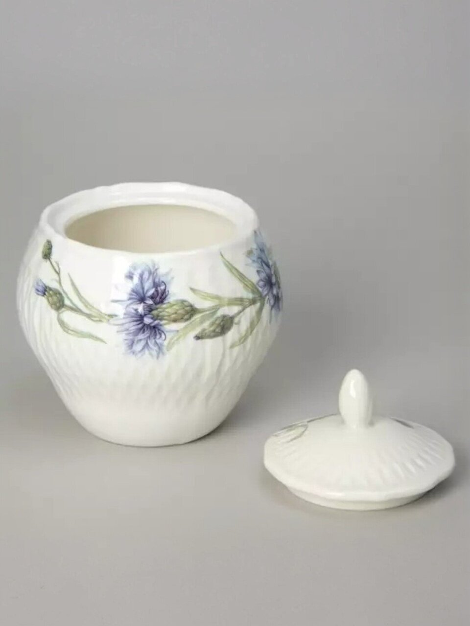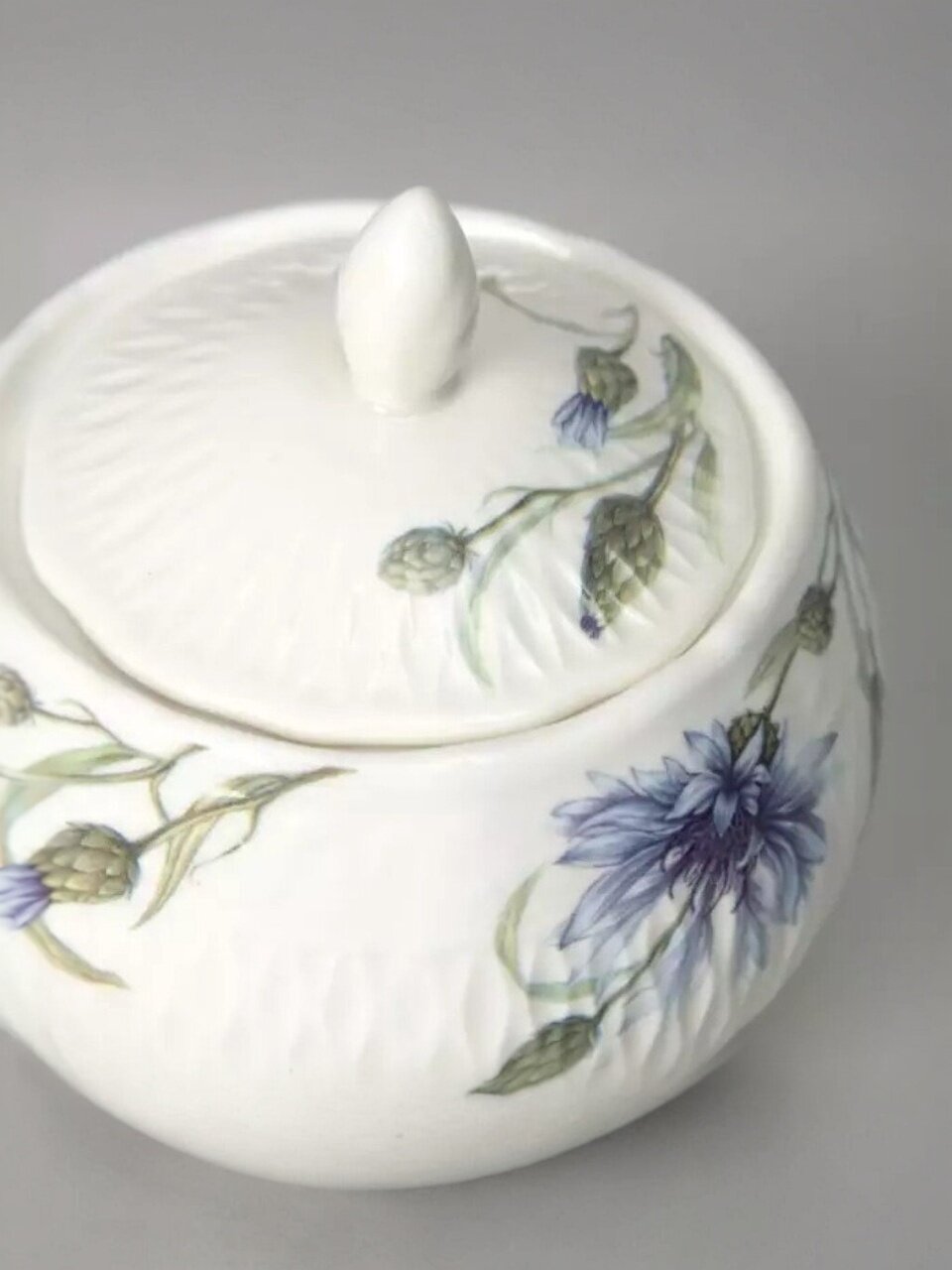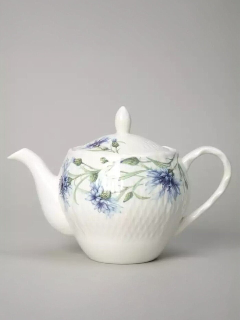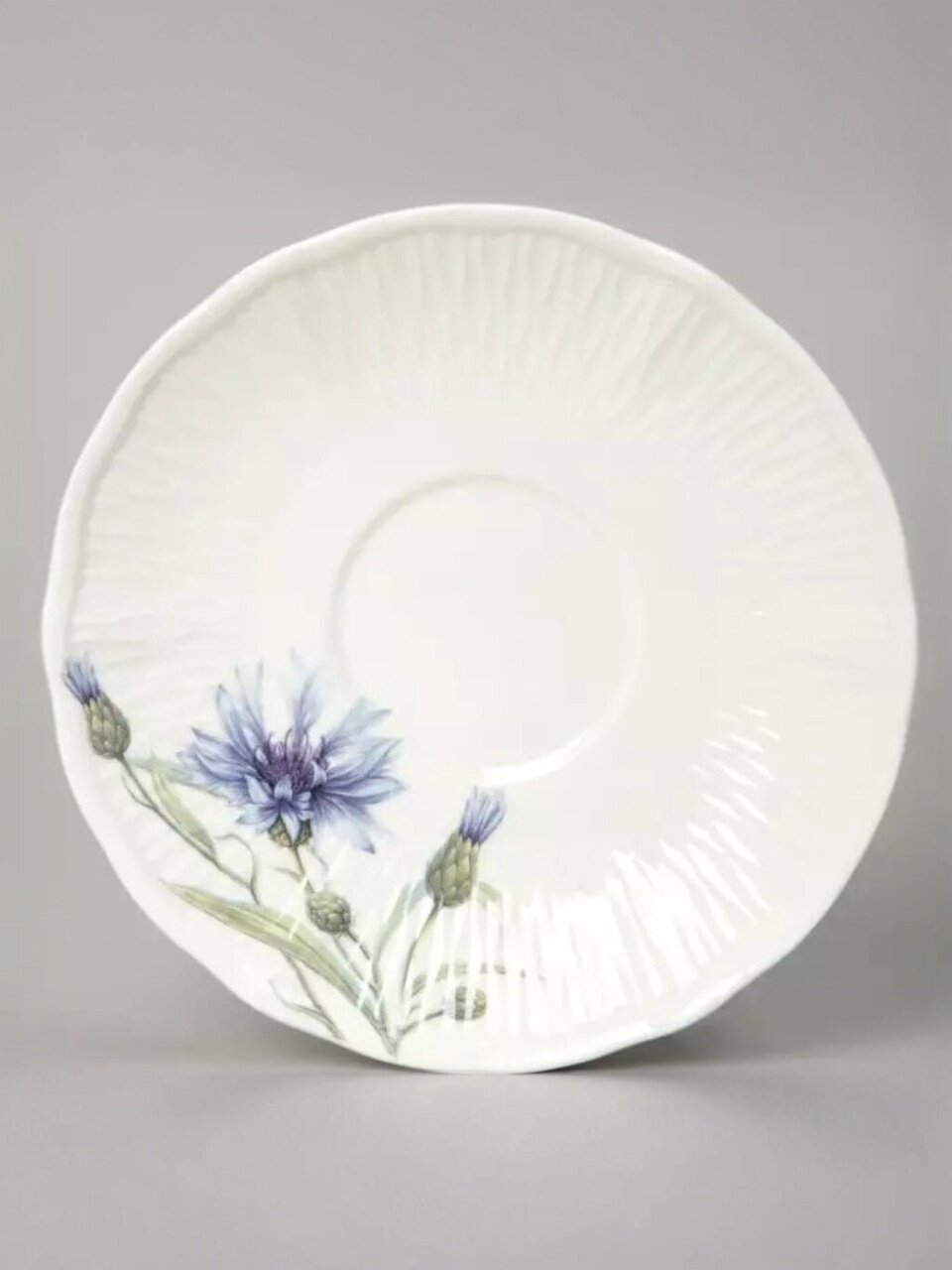 - Эксклюзивный дизайн с цветочным рисунком: каждый предмет сервиза украшен нежными васильками, создавая атмосферу уюта и праздника